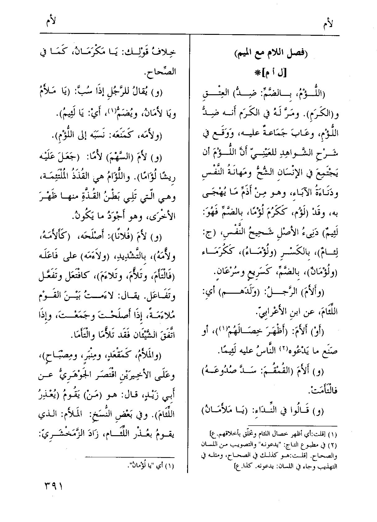 (فصل اللَّام مَعَ الْمِيم)