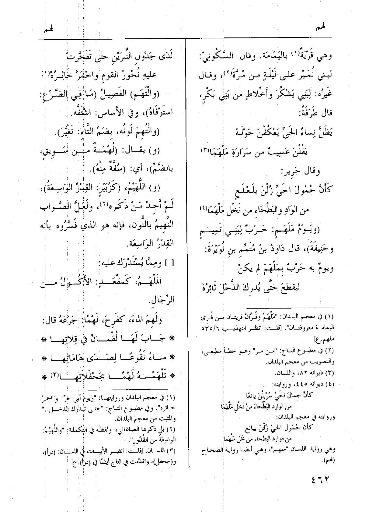 (و) اللُّهَيْمُ، (كَزُبَيْرٍ: القِدْرُ الوَاسِعَةُ) ، لَمْ أَجِدْ مَنْ ذَكَره، ولَعَلَّ الصَّواب النَّهِيمُ بالنُّون، فَإِنَّهُ هُوَ الَّذِي فَسَّرُوه بِأَنَّهُ القِدْرُ الوَاسِعَة. [] ومِمَّا يُسْتَدْرَك عَلَيْهِ: