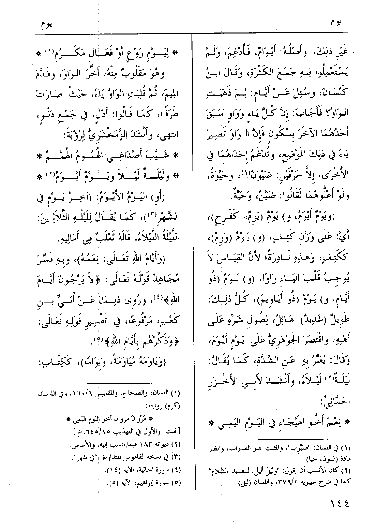 (ولَيْلَةٌ لَيْلاَ} ويَوْمٌ {أيْوَمُ ... )