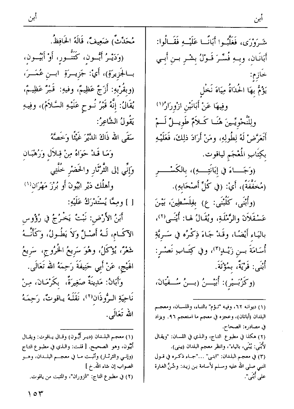 يَؤُمُّ بهَا الحُداةُ مِياهَ نَخْلٍ وفيهَا عَن} أَبانَيْنِ ازْوِرارُوللنّحويِّين هُنَا كَلامٌ طَويلٌ لم أَتَعرَّض لَهُ لطُولِه، ومَن أَرادَ ذلِكَ فَعَلَيهِ بكِتابِ المعْجمِ لياقوتٍ.