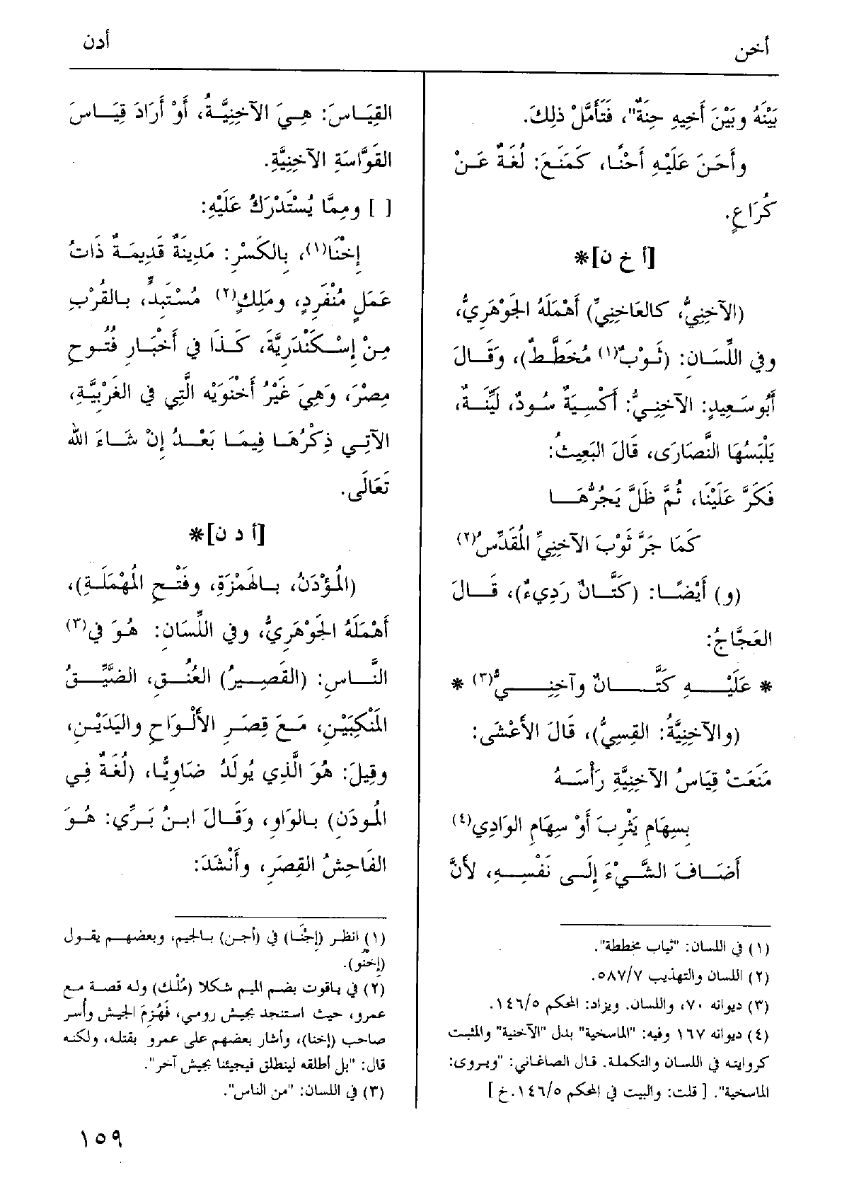 (وقالَ أَبو سَعِيدٍ: الآخِنِيُّ: أَكْسِيَةٌ سُودٌ لَيِّنةٌ يَلْبَسُها النَّصارَى؛ قالَ البَعِيث: