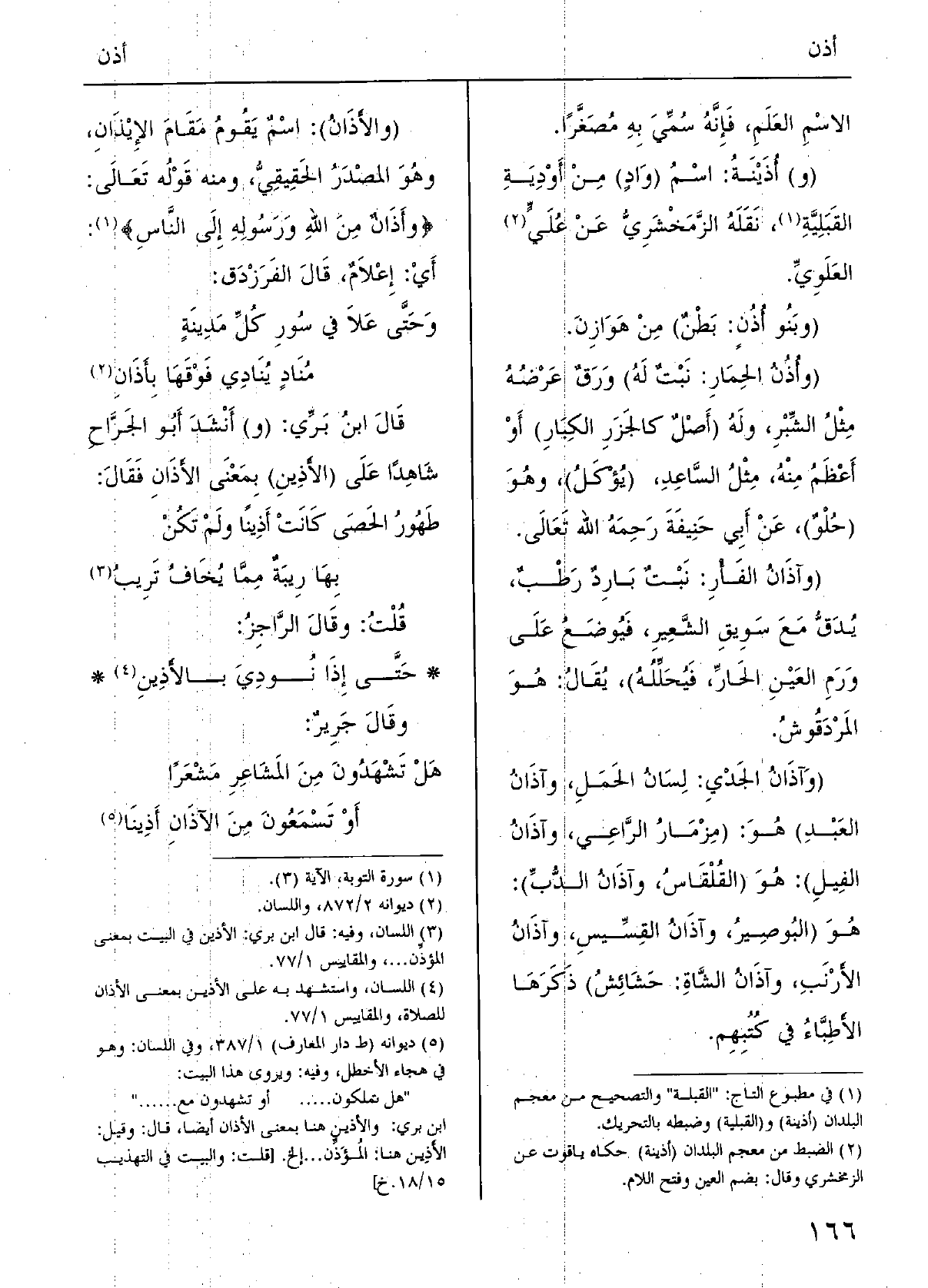 هَل تَشْهدون من المَشاعِرِ مشعراً أَو تَسْمَعونَ مِن} الآذانِ أَذِيناً؟ .