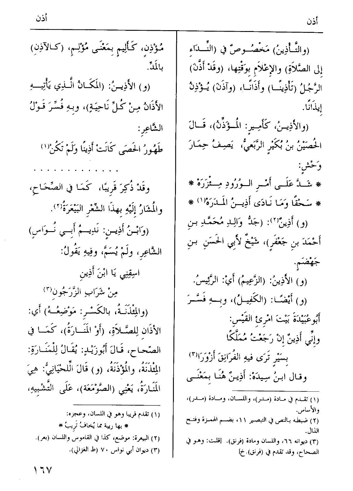 إسقِني يَا ابنَ أَذِينٍ من شراب الزرجون (} والمِئْذَنَةُ، بالكسْرِ: موْضِعُه) ، أَي الأَذَان للصَّلاةِ، (أَو المَنارَةُ) ، كَمَا فِي الصِّحاحِ.
