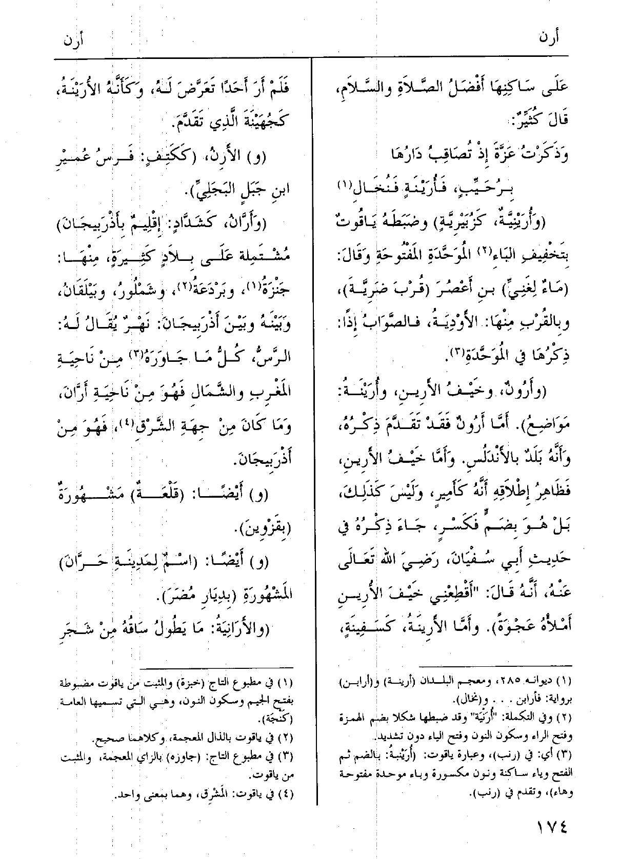 ( {وأَرَّانُ، كشَدَّادٍ: إِقْليمٌ بأَذْرَبيجانَ) مُشْتَملةٌ على بِلادٍ كثيرَةٍ مِنْهَا: خبزةُ وبردعَةُ وشَمْكُورُ وبَيْلقان، وبَيْنه وبَيْنَ أَذْرَبِيجانَ نَهْرٌ يقالُ لَهُ الرّسّ، كلّ مَا جاوَزَه مِن ناحِيَةِ المَغْرِبِ والشّمالِ فَهُوَ مِن ناحِيَة} أَرَّانَ، وَمَا كانَ مِن جهَةِ الشَّرْق فَهُوَ مِن أَذْرَبيجانَ.