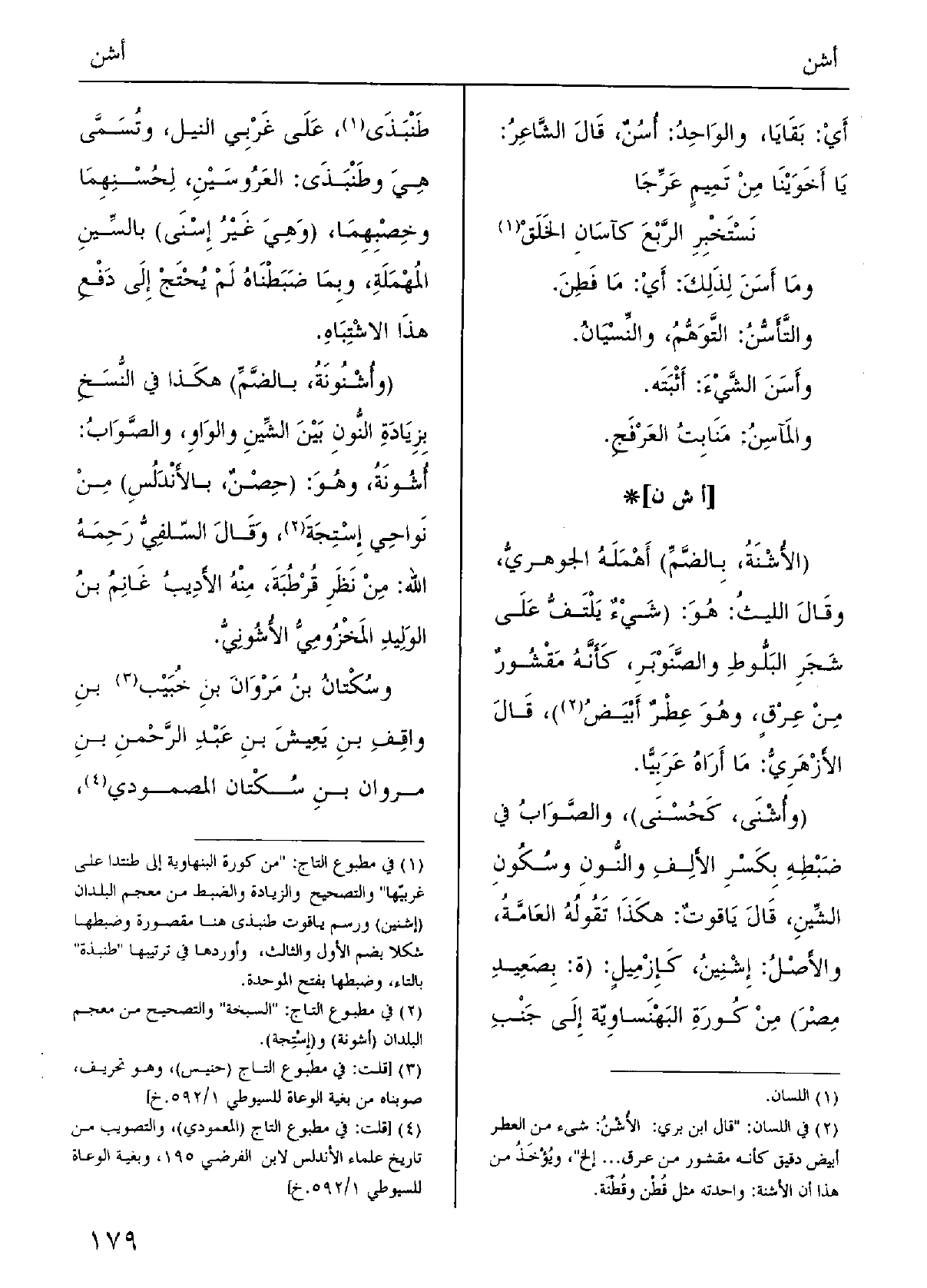 ( {وأُشْنونَةُ، بالضَّمِّ) ، هَكَذَا فِي النُّسخِ بزِيادَةِ النُّونِ بينَ الشِّيْن والواوِ والصَّوابُ} أُشُونَة، وَهُوَ (حِصْنٌ بالأَنْدَلُسِ) مِن نواحِي السبخة.