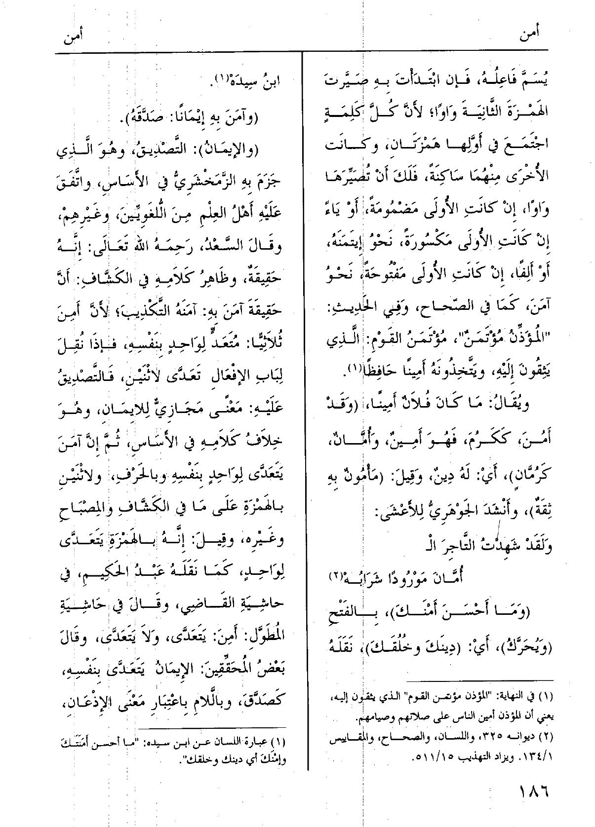 ولَقَدْ شَهِدْتُ التَّاجر} الأُمَّانِ مَوْروداً شرابُهْ (وَمَا أَحْسَنَ {أَمْنَكَ) ، بالفتْحِ (ويُحَرَّكُ) ، أَي (دينَكَ وخُلُقَكَ) ؛) نَقَلَهُ ابنُ سِيْدَه (} وآمَنَ بِهِ {إِيماناً: صَدَّقَهُ.
