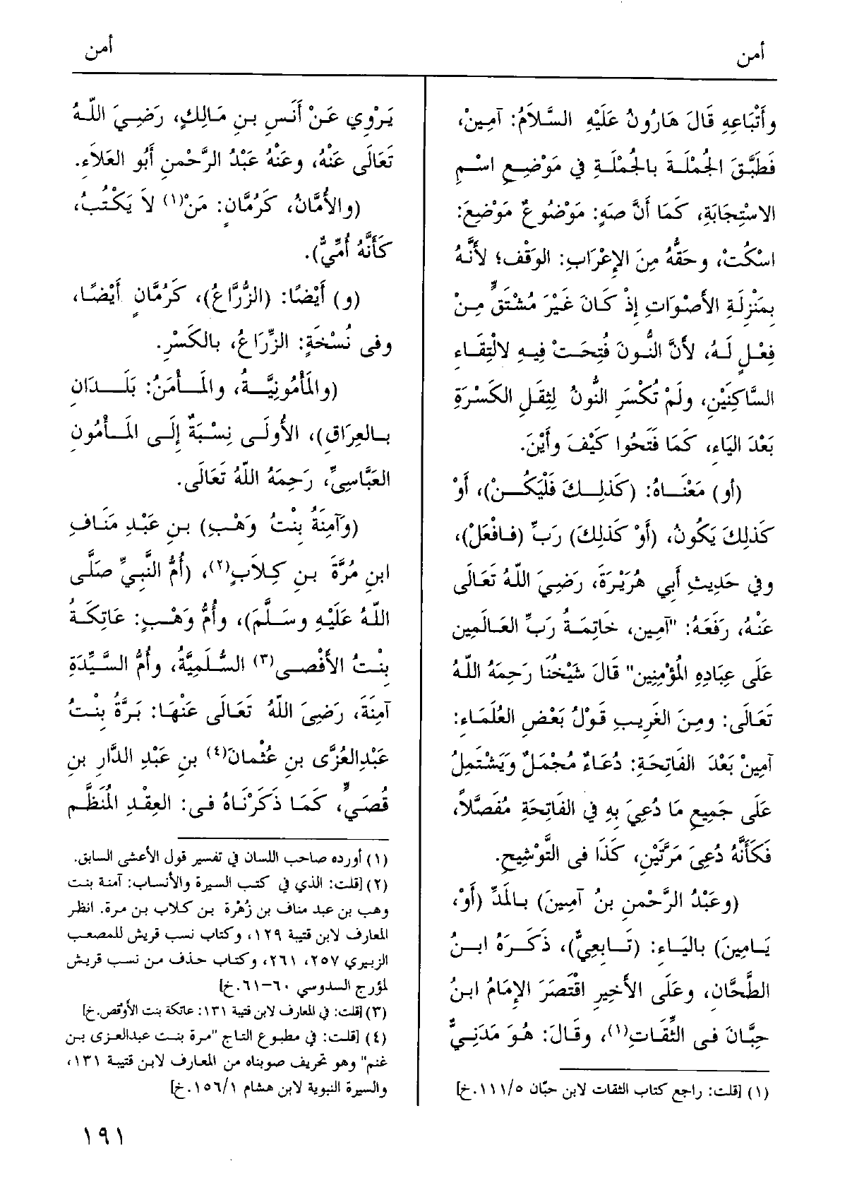 ( {والمَأْمُونِيَّةُ} والمَأْمَنُ: بَلَدانِ بالعِراقِ) ، الأُولى نِسْبَة إِلَى {المَأْمُون العبَّاسِيّ، رحِمَه اللَّهُ تعالَى.