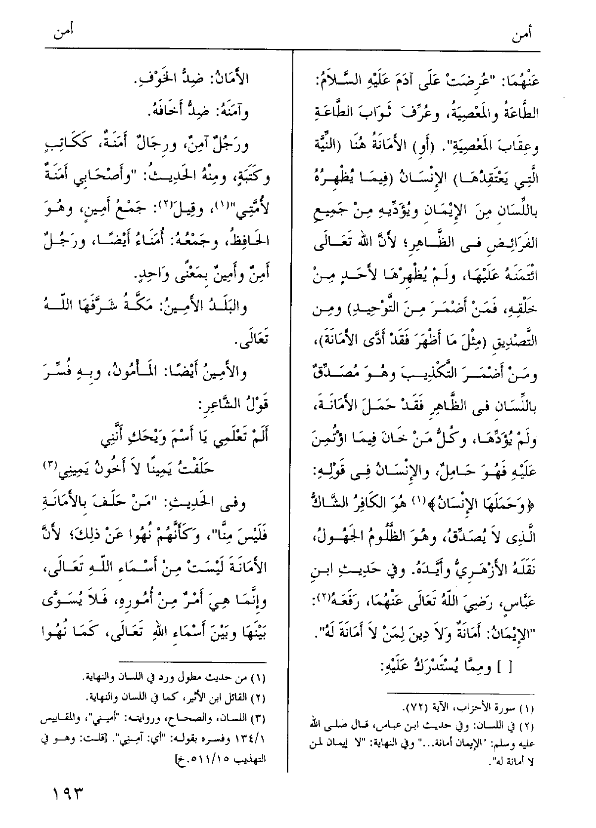 } الأمانُ: ضِدّ الخَوْفِ.