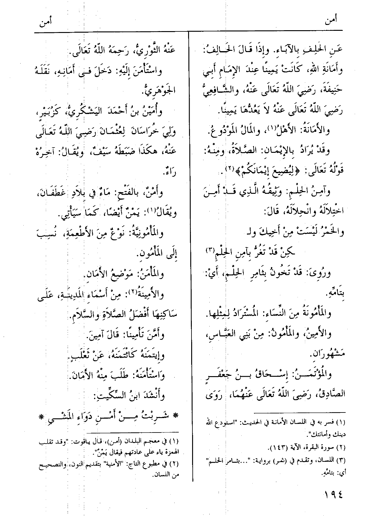 {وآمِنُ الحِلْم: وَثِيقُه الَّذِي قد أَمِنَ اخْتِلالَهُ وانْحِلالَهُ؛ قالَ: