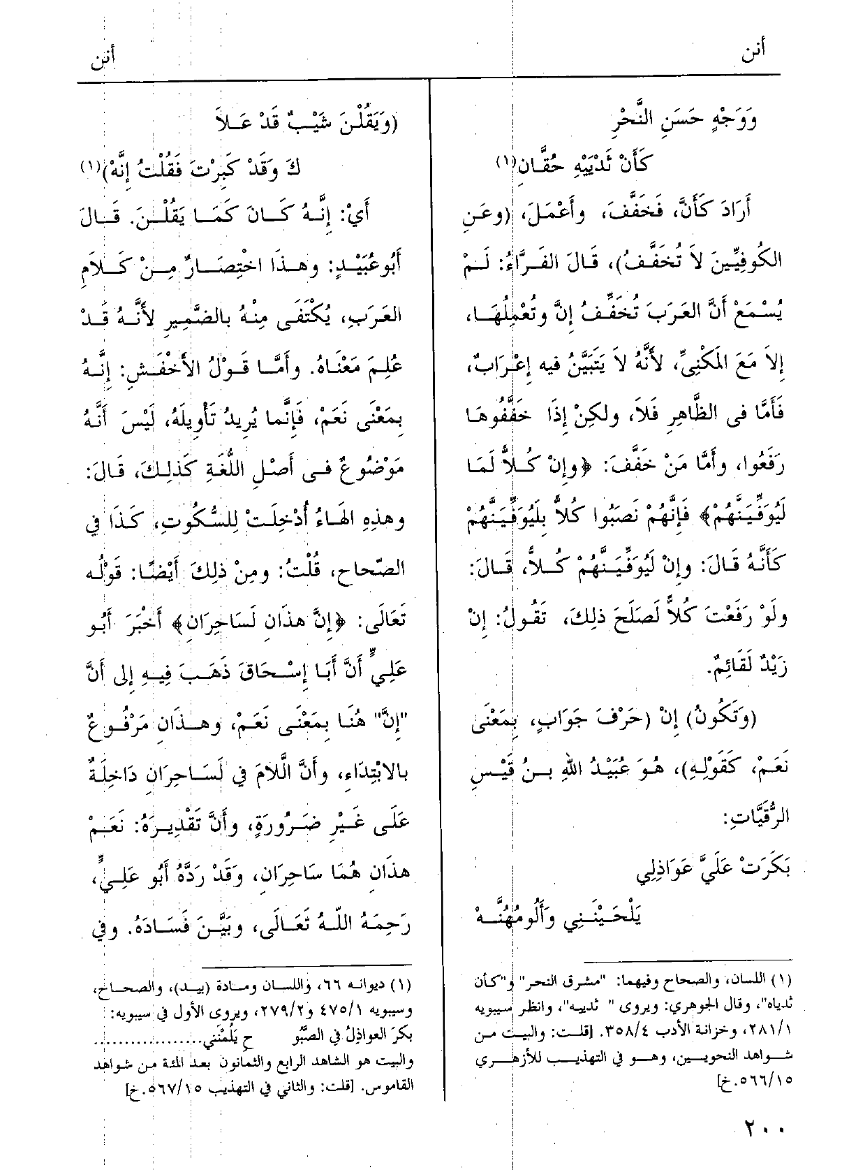 بَكَرَتْ عليَّ عَواذِلييَلْحَيْنَنِي وأَلُومُهُنَّهْ (ويَقُلْنَ شَيْبٌ قد عَلا (كَ وَقد كَبِرْتَ فقُلْتُ {إِنَّهْ) أَي: إِنَّه كَانَ كَمَا يَقُلْن.