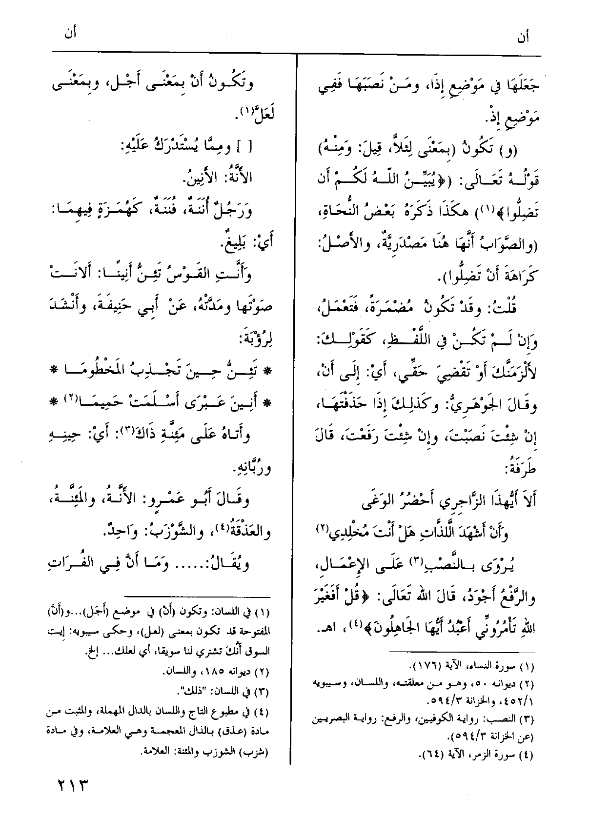 وتكونُ أَنْ بمعْنَى أَجَلْ وبمعْنَى لعلَّ.