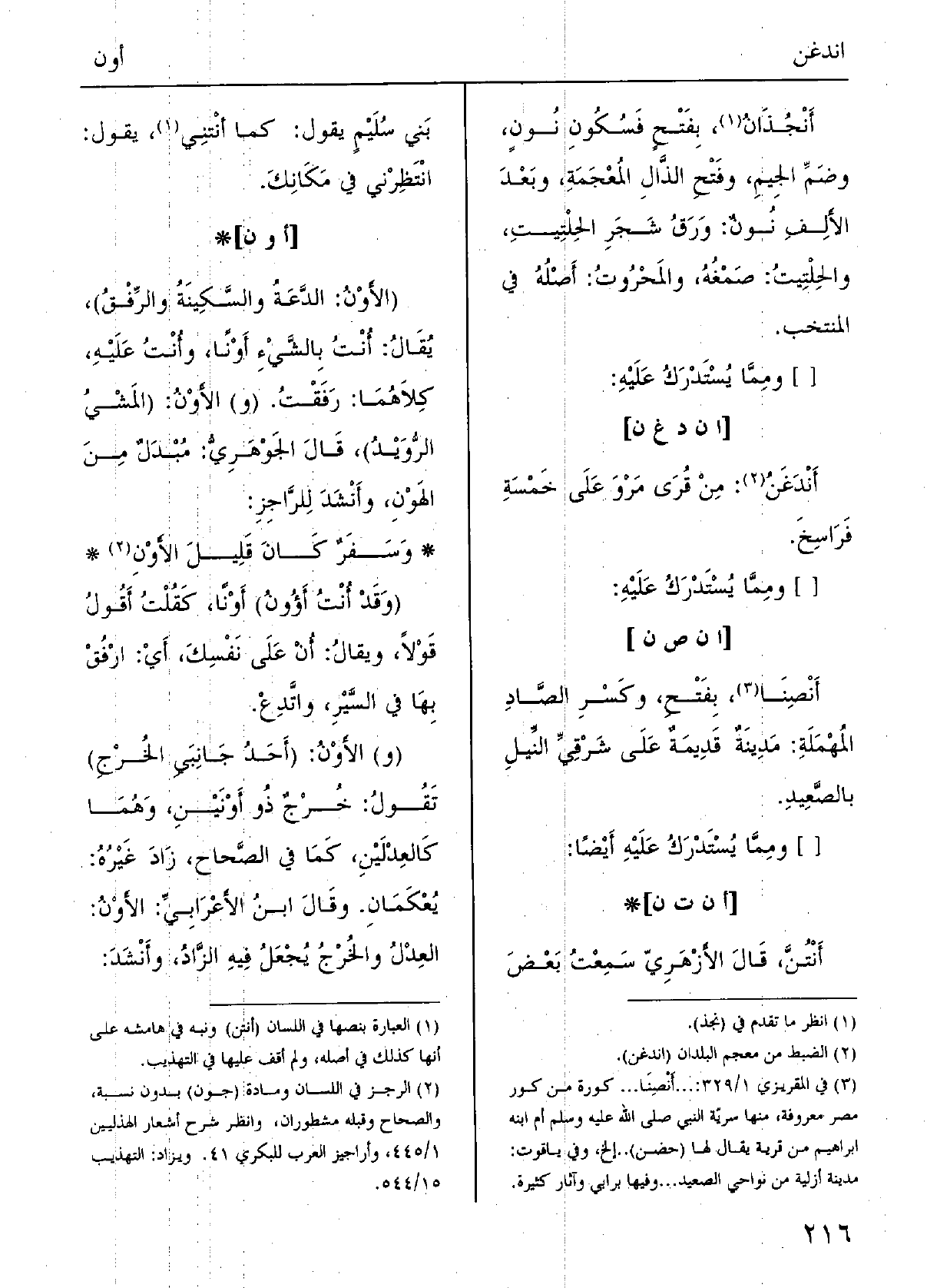 } أنتن، قالَ الأزْهرِيُّ: سَمِعْتُ بعضَ بَني سُلَيم يقولُ كَمَا {أَنْتَني يقولُ انْتَظِرْني فِي مَكانِك.