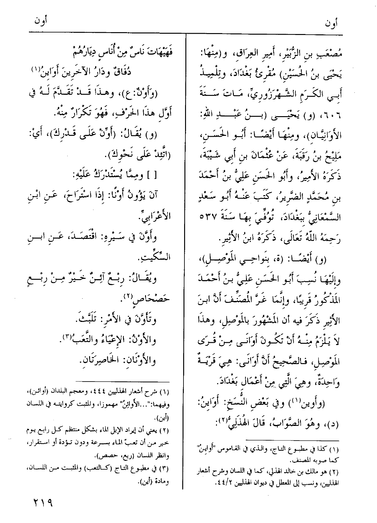 ( {وأوين) ، وَفِي بعضِ النُّسخِ: أَوايِنُ: (د) ، وَهُوَ الصَّوابُ، قالَ الهُذَليُّ: