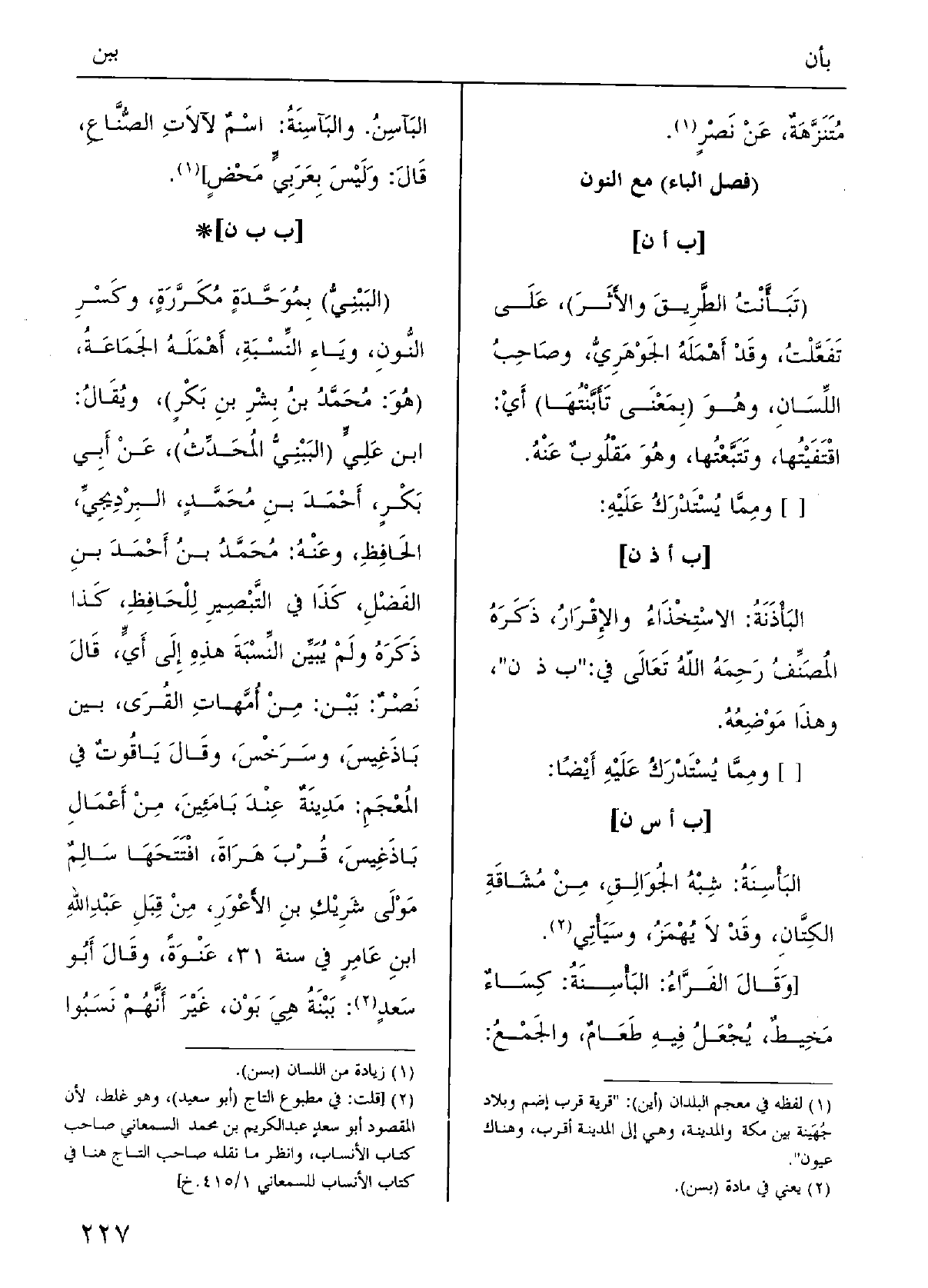 : ( {البَبْنِيُّ) ، بموحَّدَةٍ مكرَّرَةٍ وكسْرِ النّونِ وياء النِّسْبة.