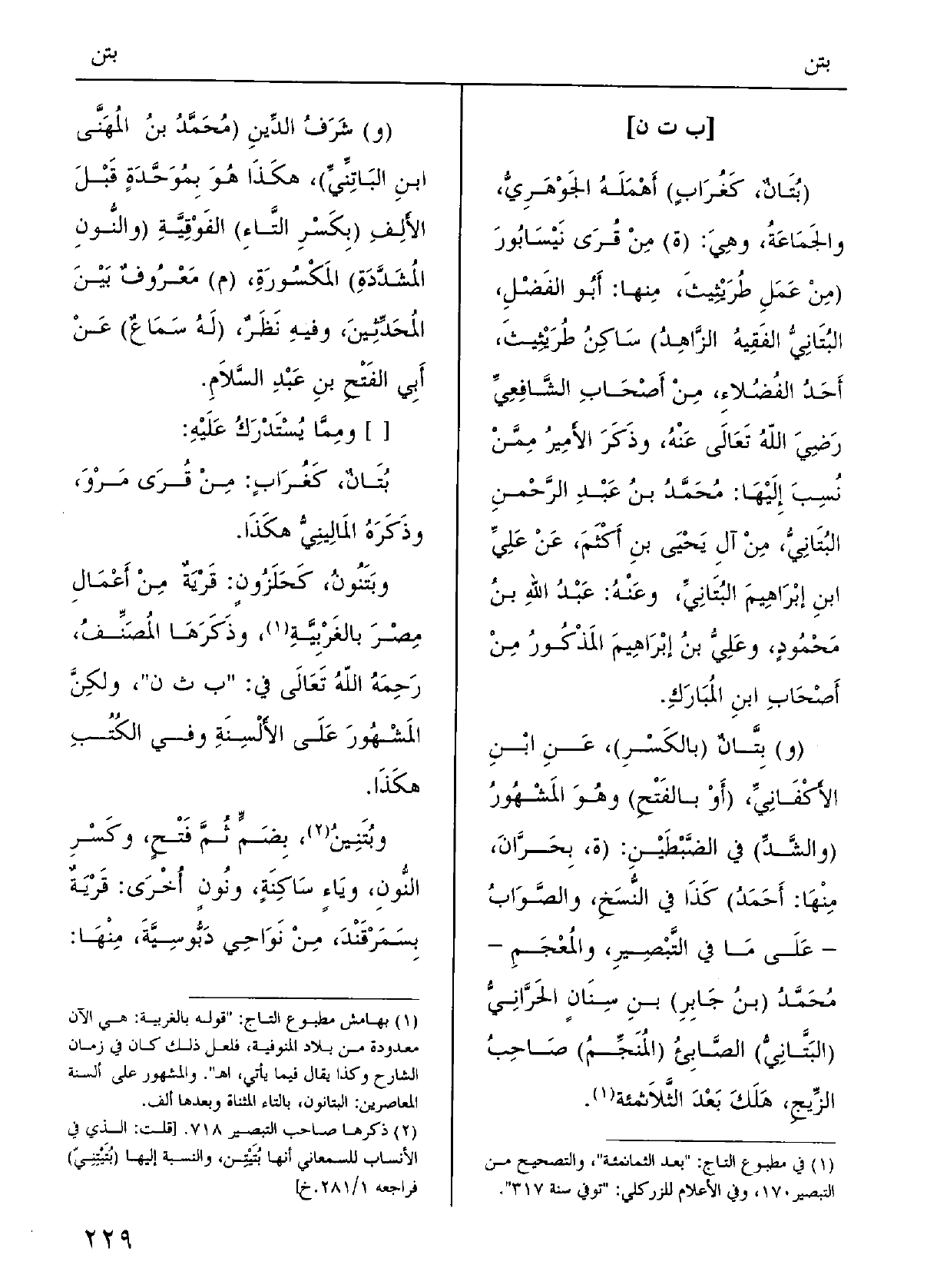 وَهِي: (ة) مِن قُرَى نَيْسابُور (مِن عَمَلِ طُرَيثِيثَ، مِنْهَا: أَبو الفضْلِ البُتانِيُّ الفَقيهُ الزَّاهِدُ) ، ساكِنُ طُرَيثيث، أَحَدُ الفُضَلاءِ، مِن أَصْحابِ الشافِعِيِّ، رضِيَ اللَّهُ تَعَالَى عَنهُ؛ وذَكَرَ الأميرُ ممَّنْ نُسِبَ إِلَيْهَا محمدَ بن عبْدِ الرحمنِ البُتانِيّ من آلِ يَحْيَى بنِ أَكْثَم عَن عليِّ بنِ إبْراهيمَ البُتانِيّ، وَعنهُ عبدُ اللَّهِ بنُ مَحْمود وعليُّ بنُ إبْراهيمَ المَذْكُور مِن أَصْحابِ ابنِ المُبارَك.