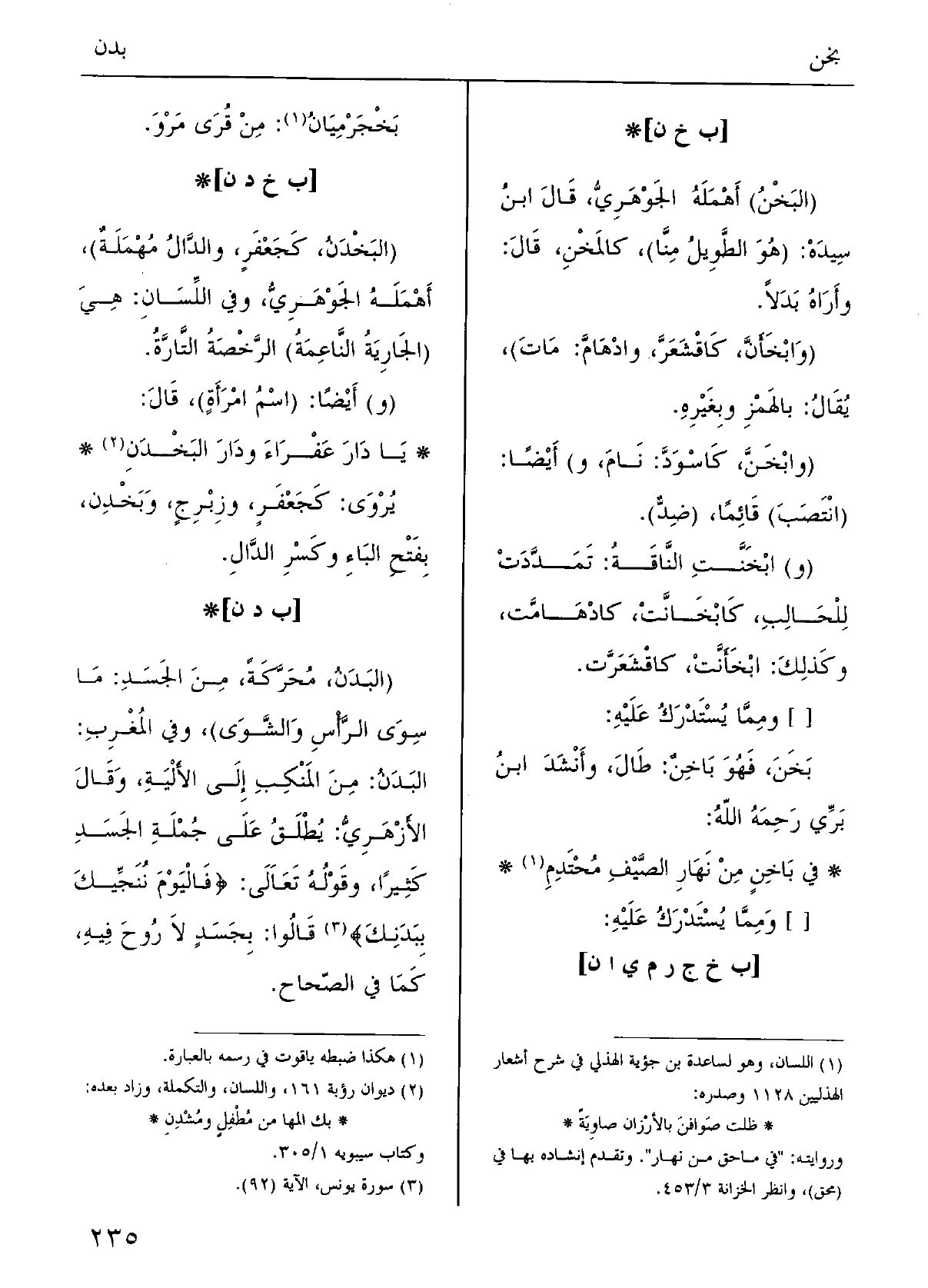 يَا دارَ عَفْراءَ ودارَ البِخْدِنِ يُرْوَى: كجَعْفَرٍ وزِبْرِجٍ، وبَخْدِنٍ، بفتْحِ الباءِ وكسْرِ الدالِ.