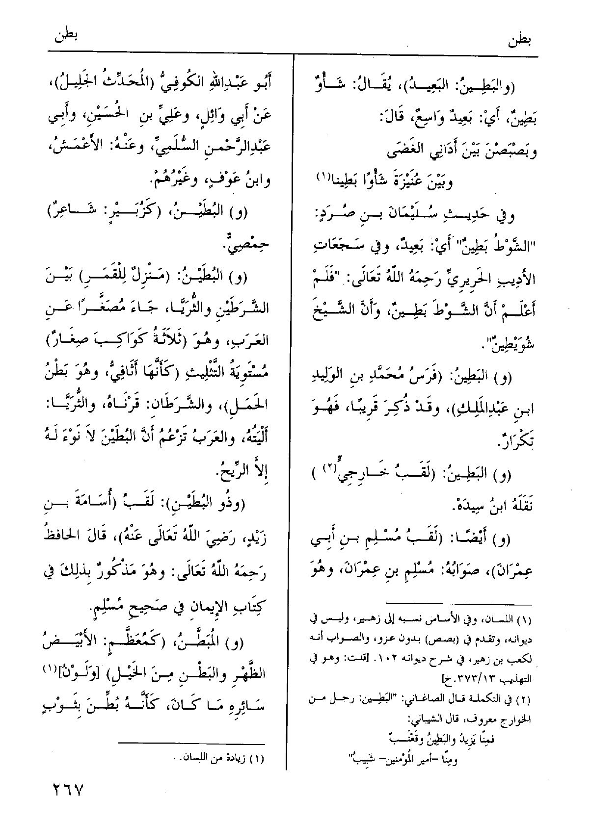 (والبَطينُ: البَعيدُ) .) يقالُ: شَأْوٌ بَطِينٌ: أَي بَعِيدٌ واسِعٌ؛ قالَ: