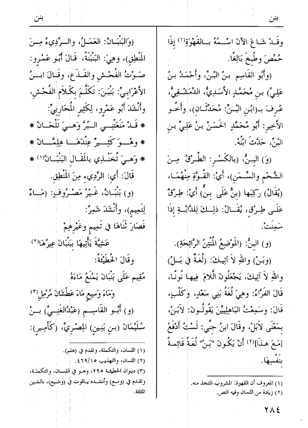 (} وبَنْ) واللَّهِ لَا آتِيكَ، (لُغَةٌ فِي بَلْ) واللَّهِ لَا آتِيكَ، يَجْعلُونَ اللامَ فِيهَا نوناً.