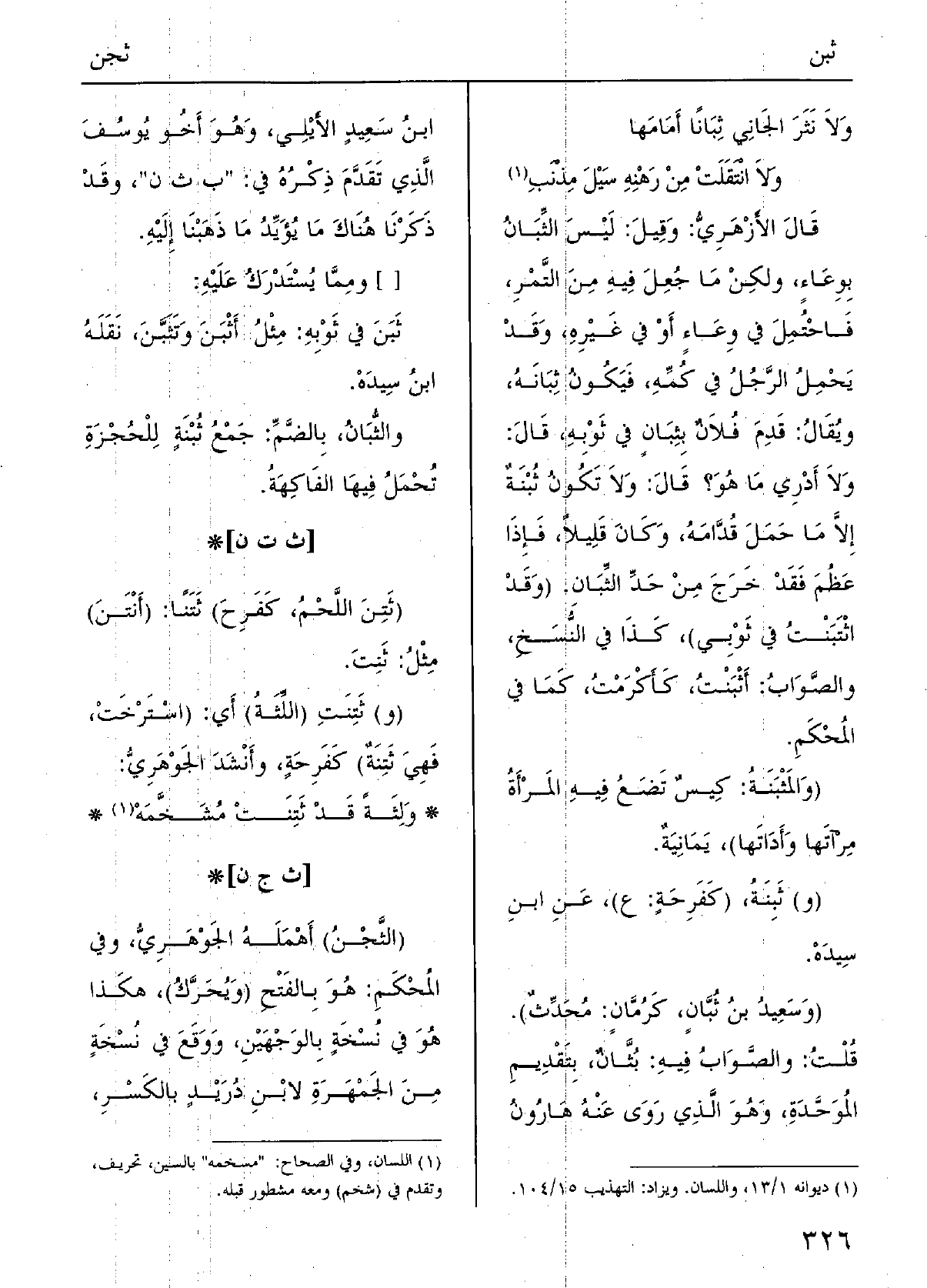 وَلَا نَثَرَ الْجَانِي ثِباناً أَمامَهاولا انْتَقَلَتْ من رَهْنِه سَيْل مِذْنَبِقالَ الأَزْهرِيُّ: وقيلَ: ليسَ الثِّبانُ بوعاءٍ، وَلَكِن مَا جُعِل فِيهِ مِن التَّمْرِ فاحْتُمِل فِي وِعاءٍ أَو فِي غيرِهِ، وَقد يَحْمِل الرَّجُلُ فِي كُمِّه فَيكون ثِبانَه.