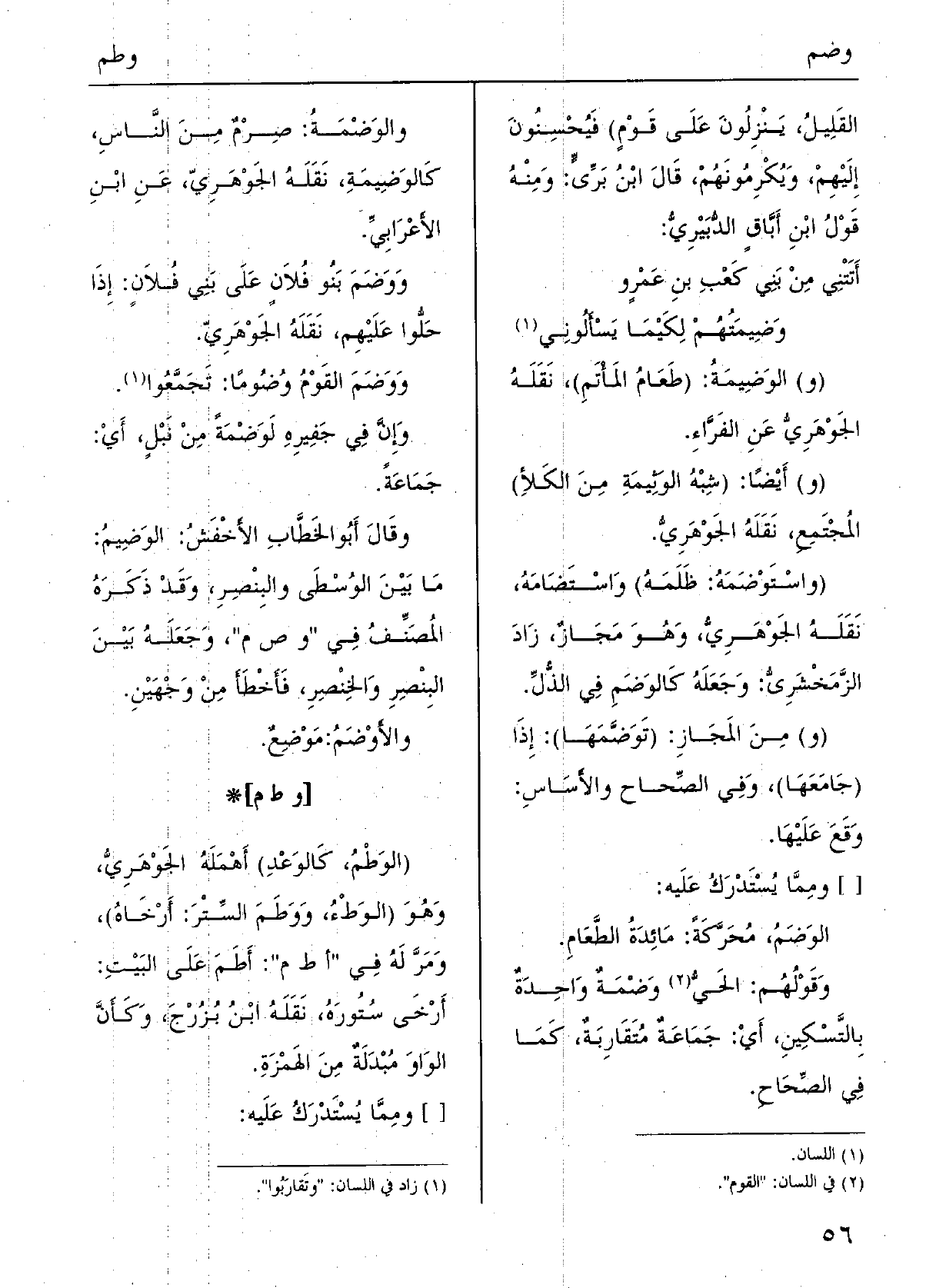 ( {الوَطْمُ، كالوَعْدِ) أهمله الْجَوْهَرِي، وَهُوَ (الوَطْءُ،} وَوَطَمَ السِّتْرَ: أرْخاهُ) ، ومَرَّ لَهُ فِي " أط م ": أَطَمَ على الْبَيْت: أرْخَى سُتُورَهُ، نَقله ابْن بُزُرْجَ، وَكَأن الْوَاو مُبْدَلةٌ من الهمزةٍ. [] وَمِمَّا يسْتَدرك عَلَيْهِ: