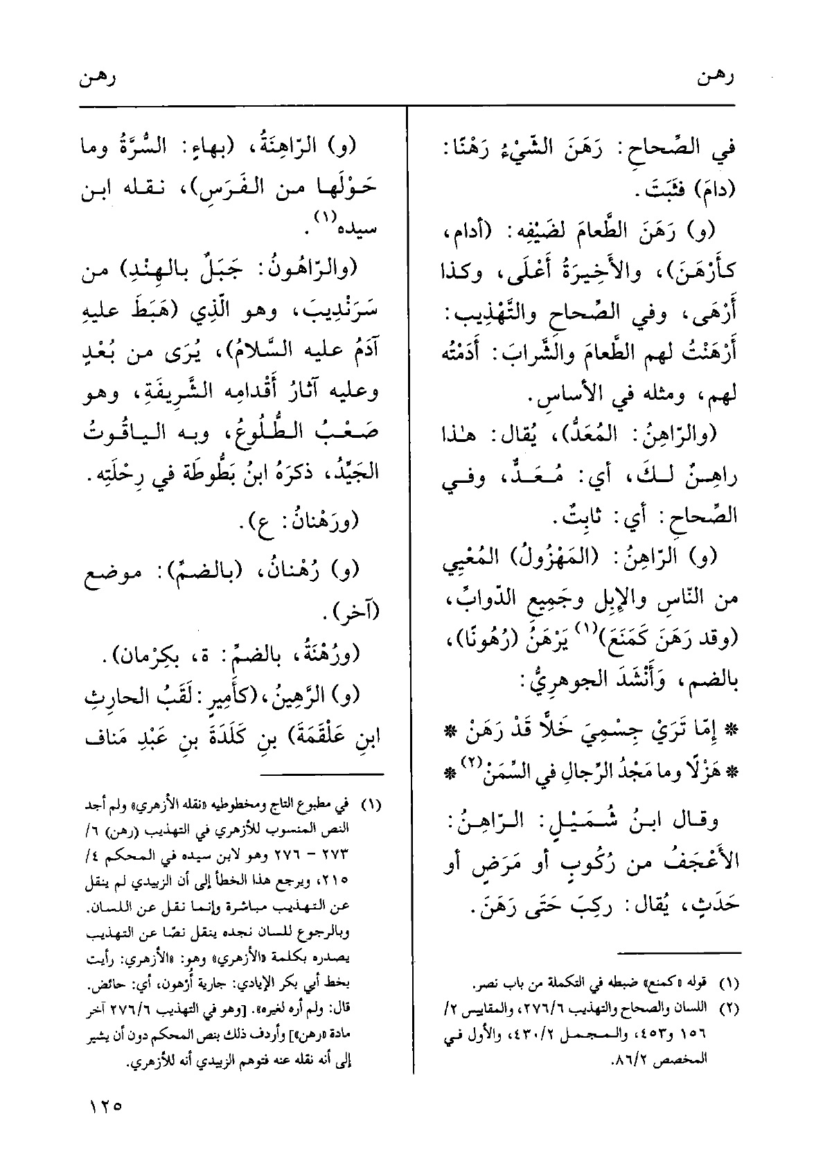 إِمَّا تَرَيْ جِسْمِيَ خَلاًّ قد رَهَنْهَزْلاً وَمَا مَجْدُ الرِّجالِ فِي السِّمَنْوقالَ ابنُ شُمَيْلٍ: الرَّاهِنُ: الأَعْجَفُ مِن ركوبٍ أَو مَرَضٍ أَو حَدَثٍ؛ يقالُ: رَكِبَ حَتَّى رَهَنَ.
