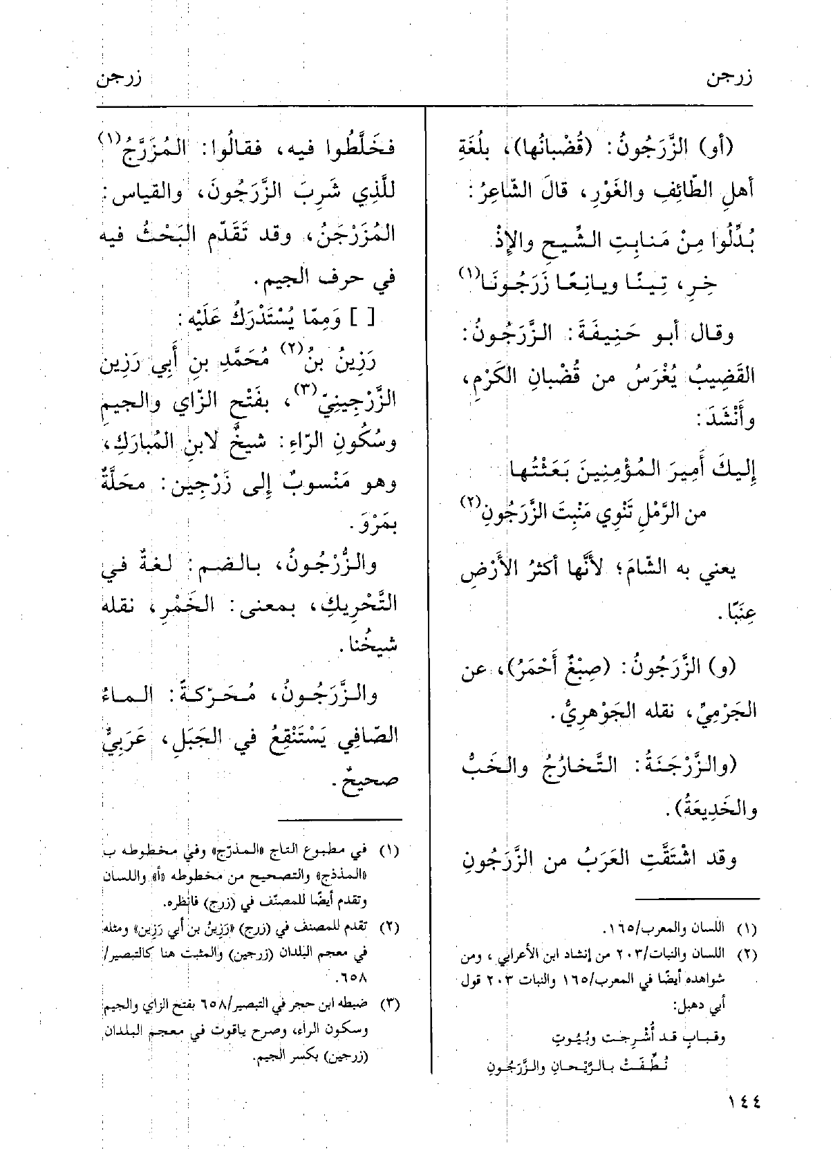 والزُّرْجُون، بالضَّمِّ: لُغَةٌ فِي التَّحْريكِ بمعْنَى الخَمْر؛ نَقَلَه شيْخُنا.