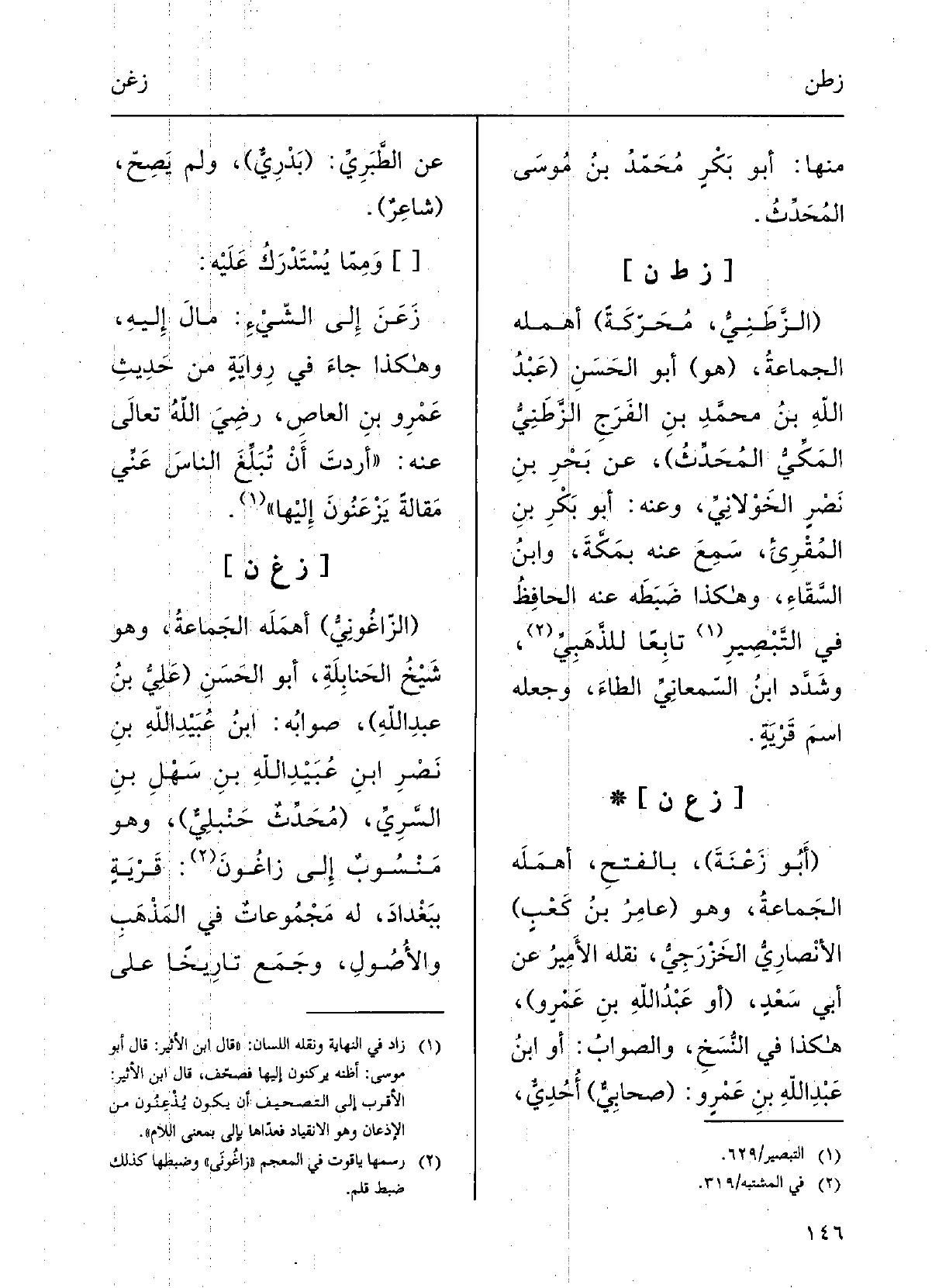 وَهُوَ شيْخُ الحنابِلَةِ أَبو الحَسَنِ (عليُّ بنُ عبدِ اللهاِ) ، صَوابُه: ابنُ عُبَيْدِ اللهاِ بنِ نَصْر بنِ عُبَيْدِ الّلهِ بنِ سهْلِ بنِ السّري، (مُحَدِّثٌ حَنْبَليٌّ) ، وَهُوَ مَنْسوبٌ إِلَى زَاغُون قَرْيةٌ ببَغْدادَ لَهُ، مَجْموعاتٌ فِي المَذْهبِ والأُصُولِ، وجَمَعَ تَارِيخا على