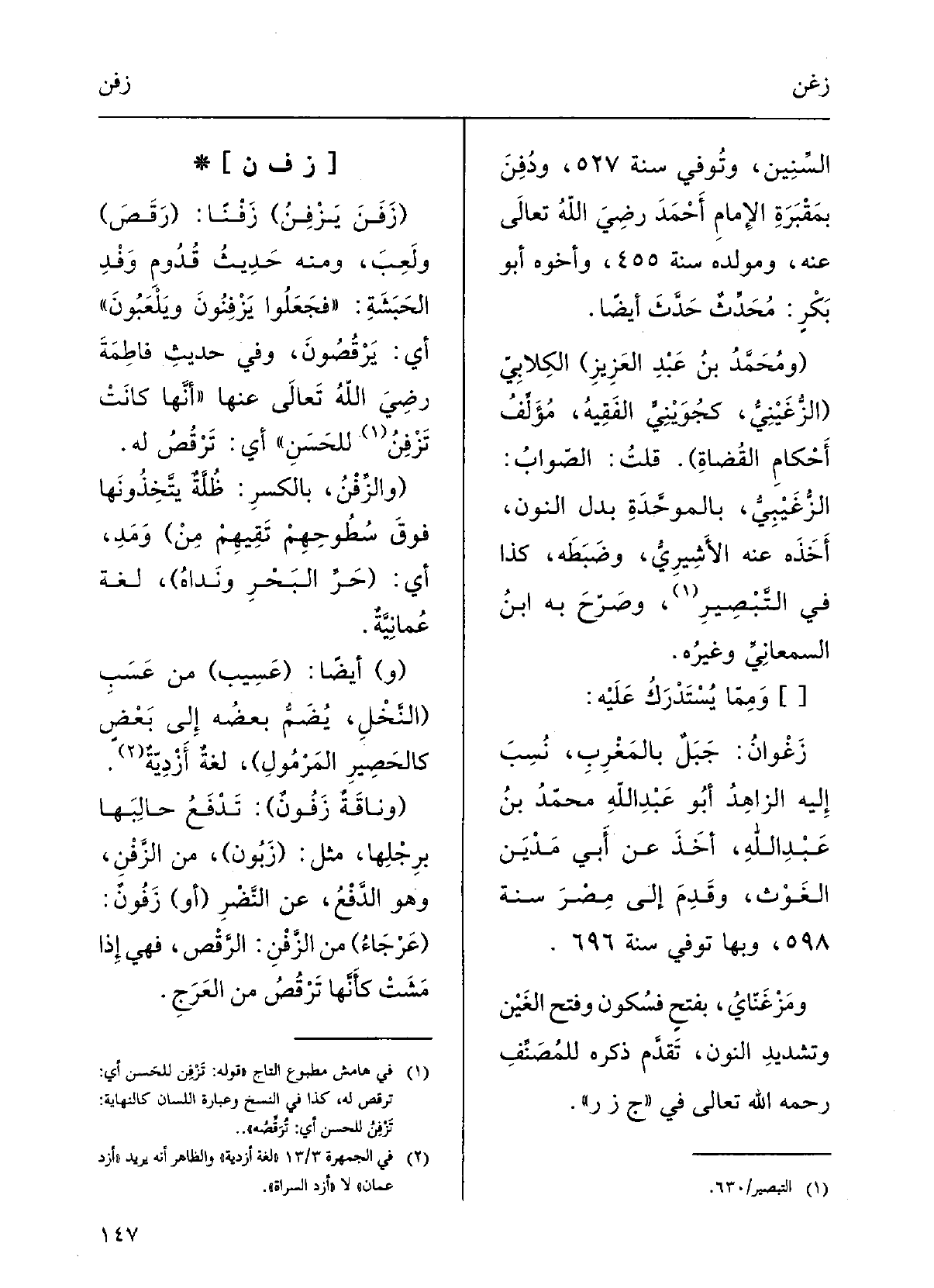 قلْتُ: الصَّوابُ: الزُّغَيْبيُّ بالموحَّدَةِ بَدَل النُّون، أَخَذَه عَنهُ الأشيريّ، وضَبَطَه كَذَا فِي التَّبْصِيرِ، وصرَّحَ بِهِ ابنُ السّمعانّي وغيرُهُ.