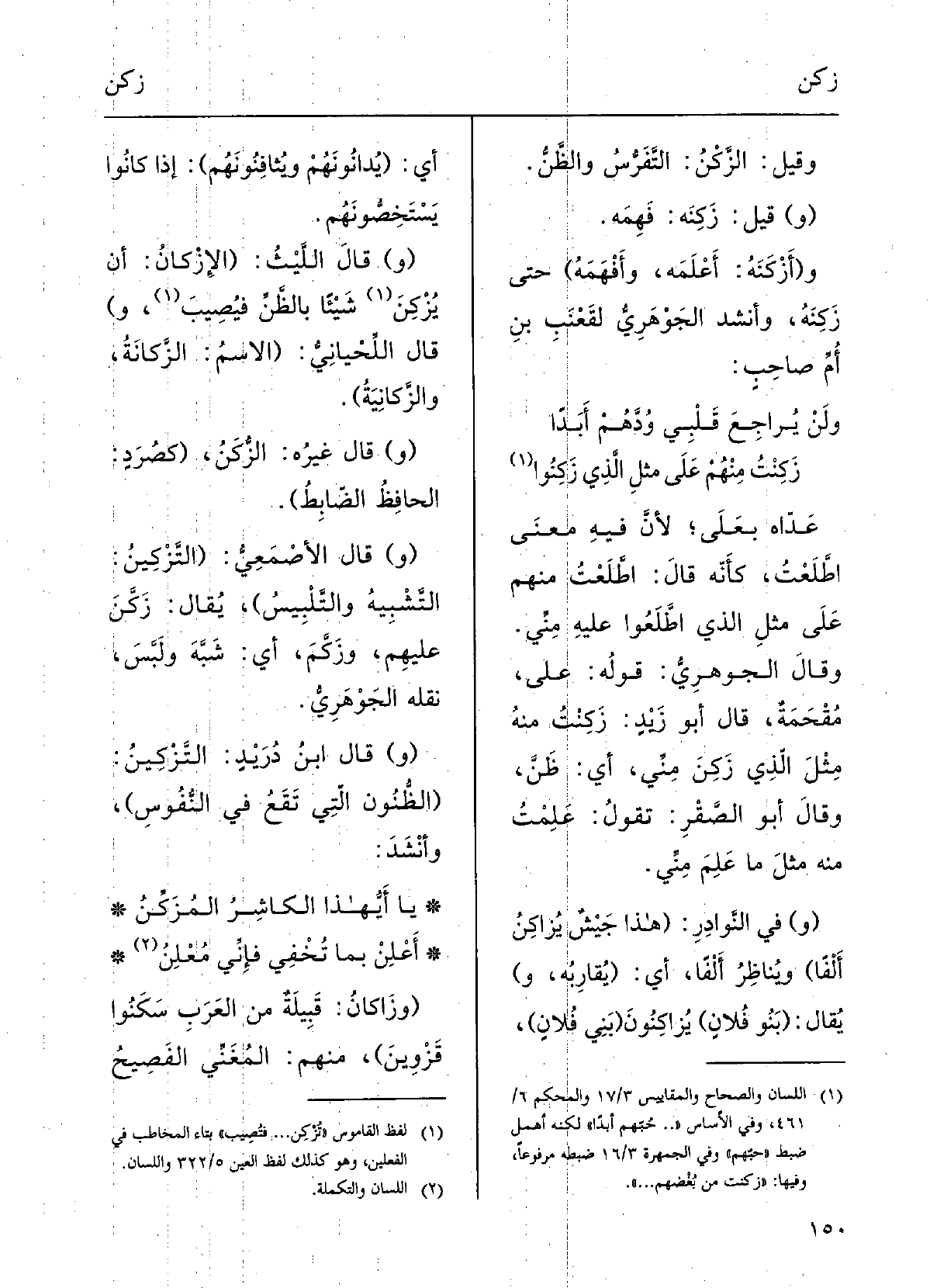 وقيلَ: الزَّكَنُ: التَّفَرُّسُ والظَّنُّ.