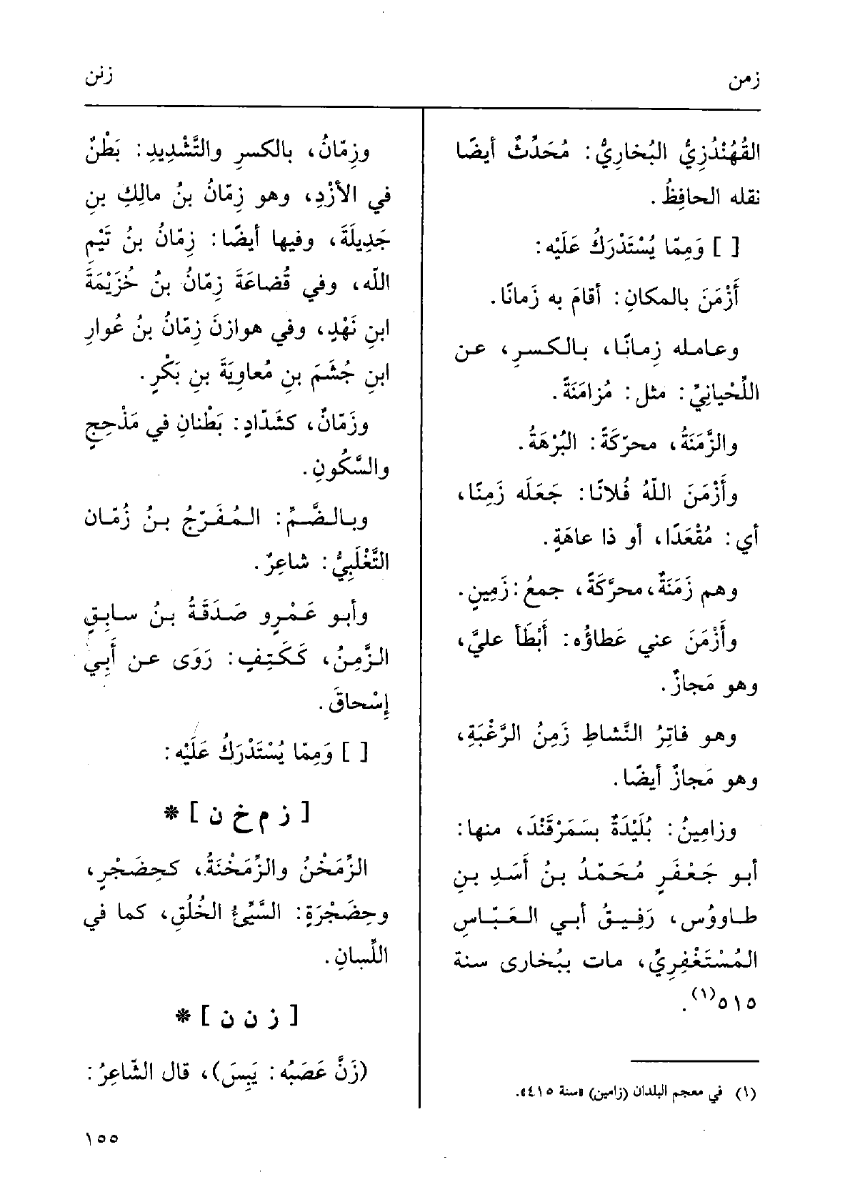 والزَّمَنَةُ، محرَّكةً: البُرْهَةُ.