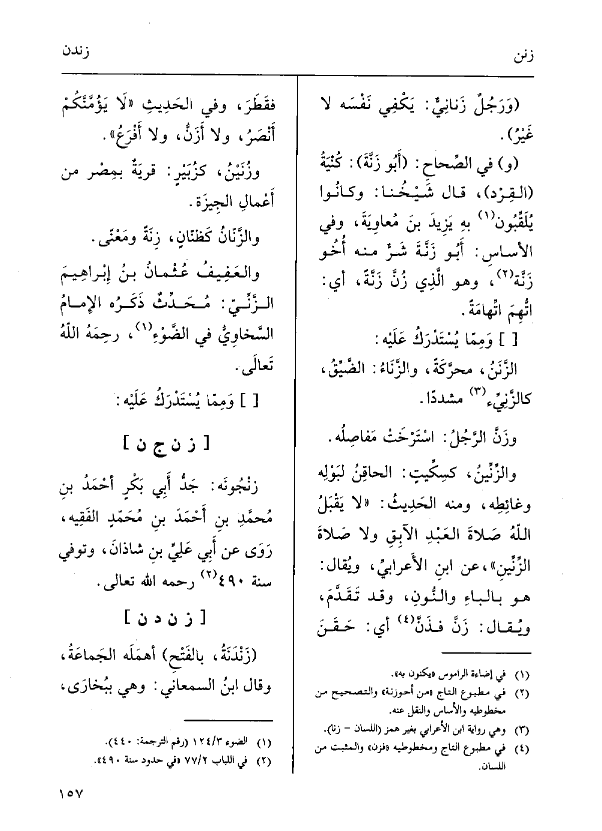 } والزِّنِّينُ، كسِكِّيت: الحاقِنُ لبَوْلِه وغائِطِه، وَمِنْه الحدِيثُ: (لَا يقبلُ اللهاُ صلاةَ العَبْدِ الآبقِ وَلَا صلاةَ {الزِّنِّين) ، عَن ابنِ الأعْرابيِّ.