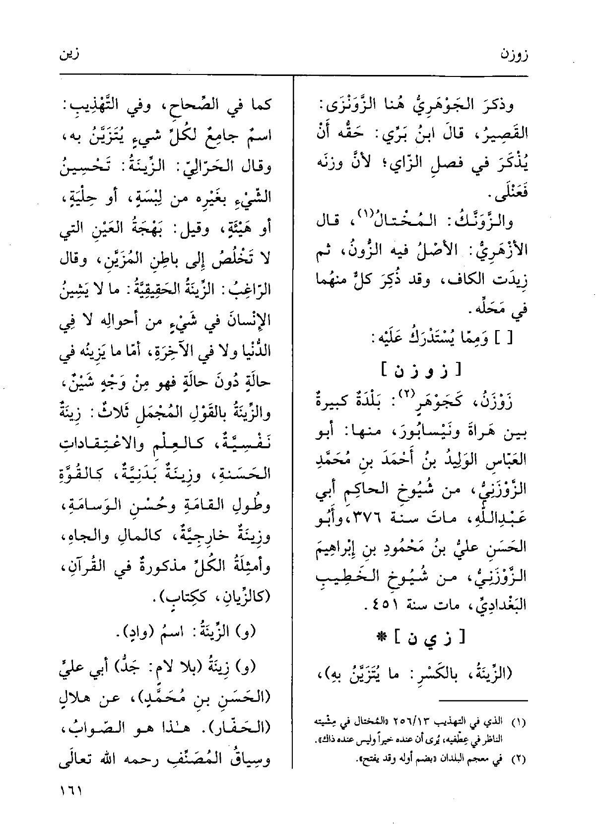 : {زَوْزَنُ، كجَوْهَرٍ: بلْدَةٌ كَبيرَةٌ بَيْنَ هراةَ ونَيْسابُور، مِنْهَا: أَبو العبَّاسِ الوَليدُ بنُ أَحمدَ بنِ محمدٍ الزَّوْزَنيُّ مِن شيوخِ الحاكِمِ أَبي عبدِ الّلهِ، ماتَ سَنَة 376؛ وأَبو الحَسَنِ عليُّ بنُ مَحْمودِ بنِ إبراهيمَ} الزَّوْزَنيُّ من شيوخِ الخَطيبِ البَغْدادِيّ، ماتَ سَنَة 451.