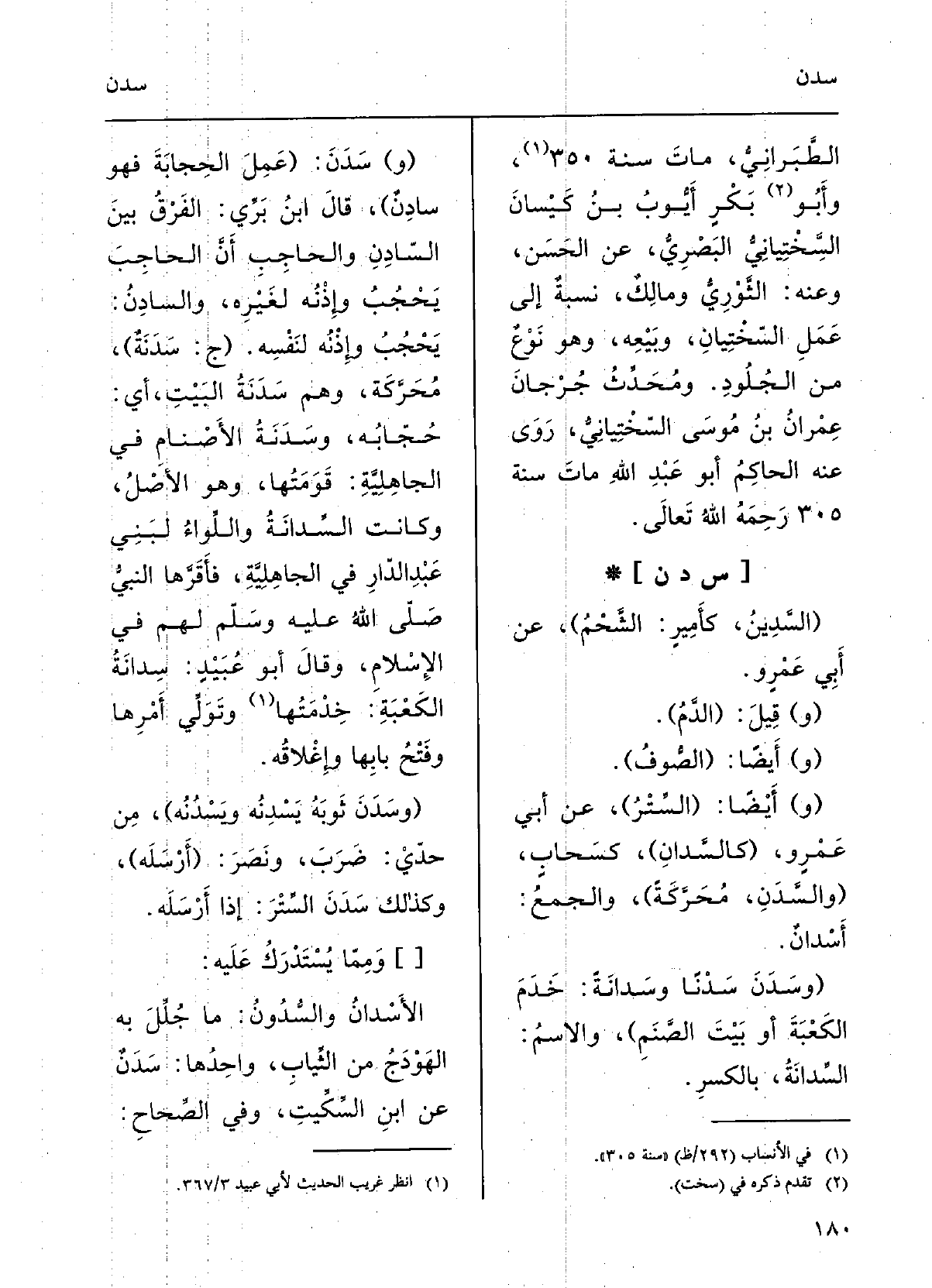 وأَبو بكْرٍ أَيوبُ بنُ كيْسَان السّخْتِيانيُّ البَصْرِيُّ عَن الحَسَن، وَعنهُ الثَّوْريُّ ومالِكُ نِسْبَة إِلَى عَمَلِ السّخْتيان وبَيْعِه وَهُوَ نَوْعٌ مِن الجُلودِ ومحدِّثُ جُرْجانَ عمْرانُ بنُ موسَى السّخْتِيانيُّ رَوَى عَنهُ الحاكِمُ أَبو عبْدِ الّلهِ، ماتَ سَنَة 305 رَحِمَه اللهاُ تَعَالَى.