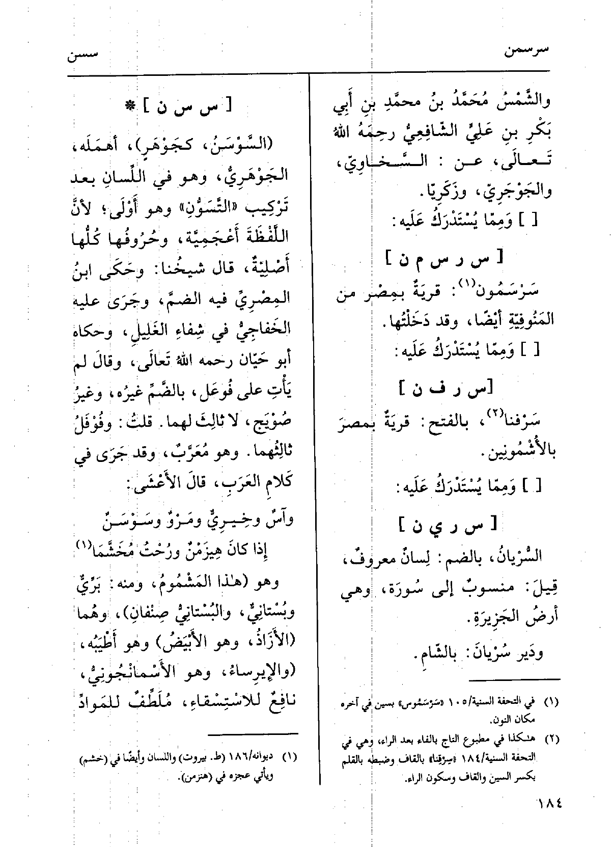 : ( {السَّوْسَنُ، كجَوْهَرٍ) : أَهْمَلَهُ الجَوْهرِيُّ.