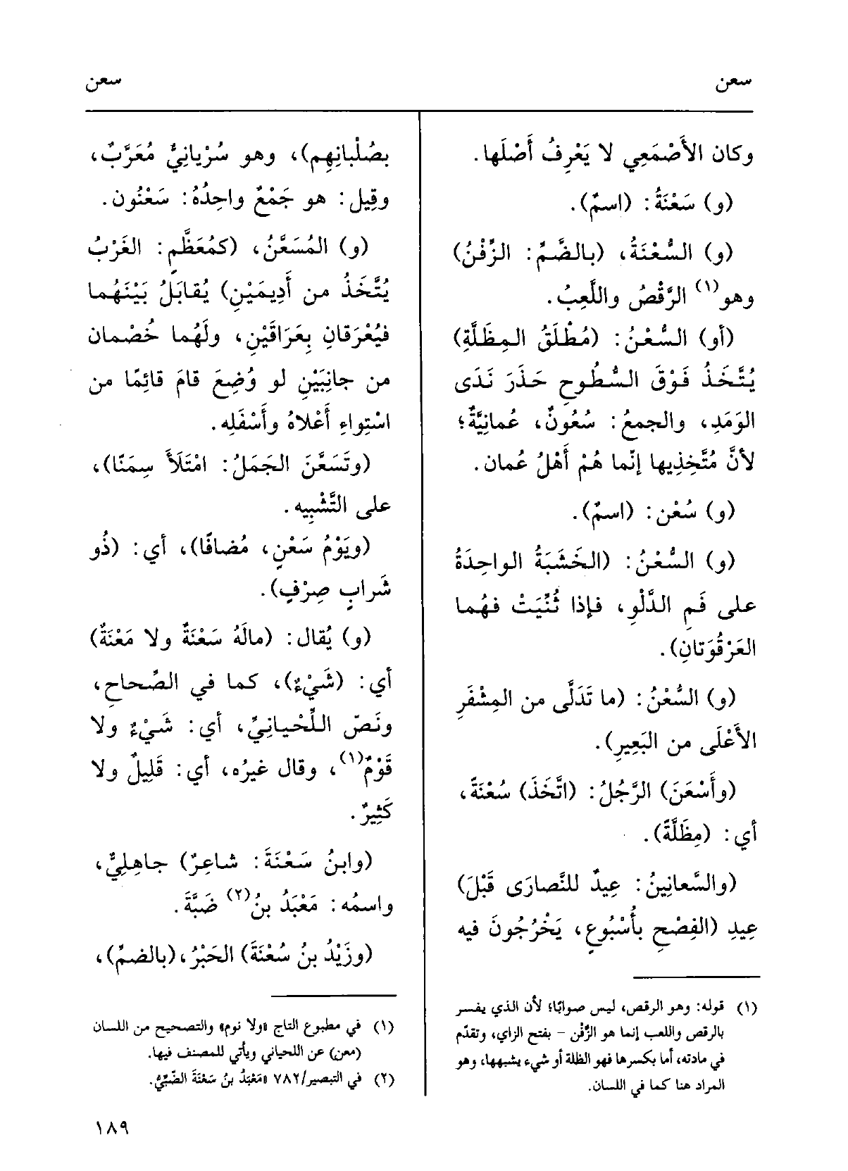 (والسَّعانِينُ: عيدٌ للنَّصارَى قَبْلَ) عيدِ (الفِصْح بأُسْبُوعٍ يَخْرجُونَ فِيهِ بصُلْبانِهم) ، وَهُوَ سِرْيانيٌّ مُعَرَّبٌ، وقيلَ: هُوَ جَمْعٌ واحِدُه سَعْنُون.