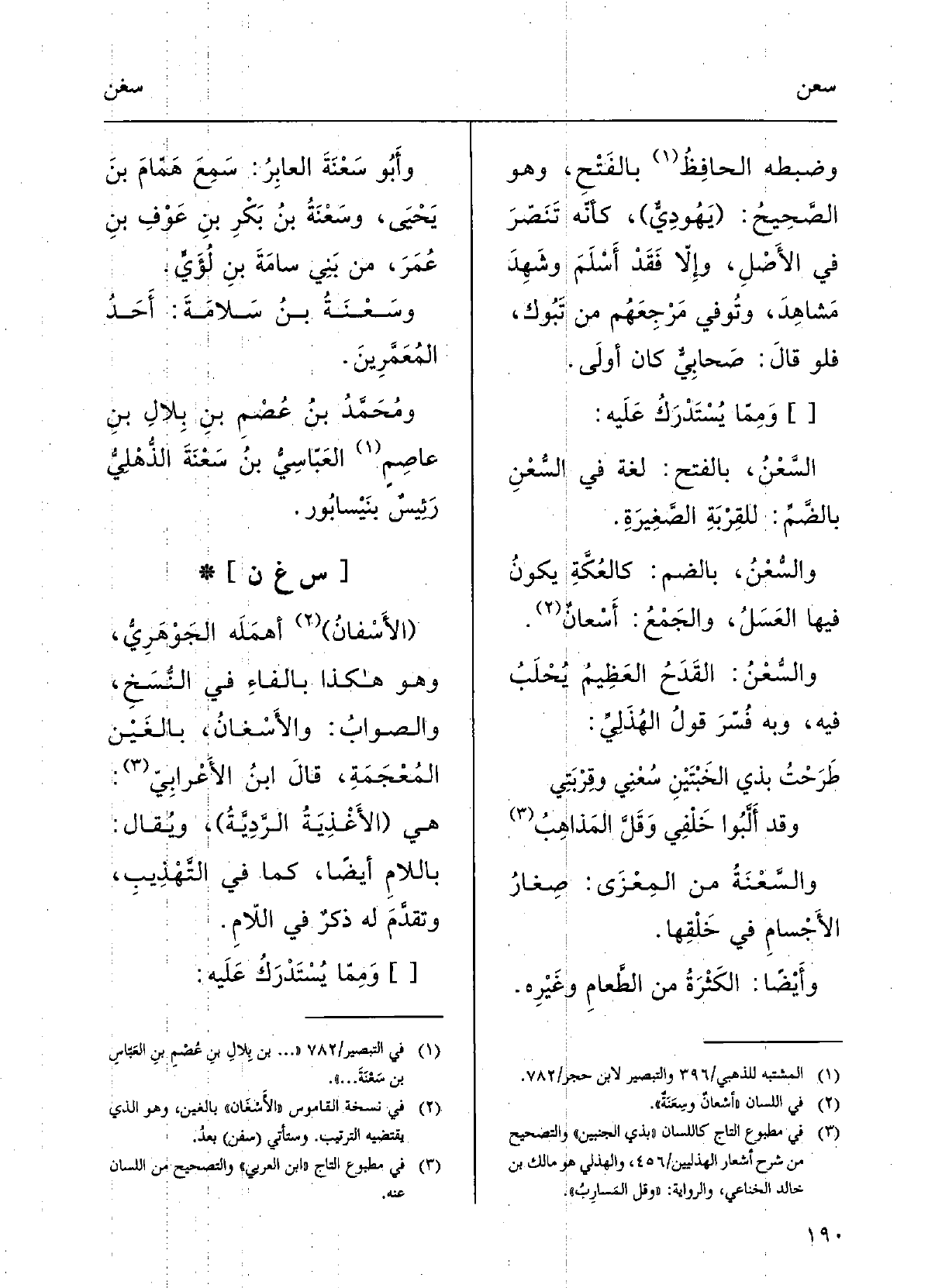 وأَبو سَعْنةَ العابِرُ: سَمِعَ هَمَّام بن يَحْيَى.