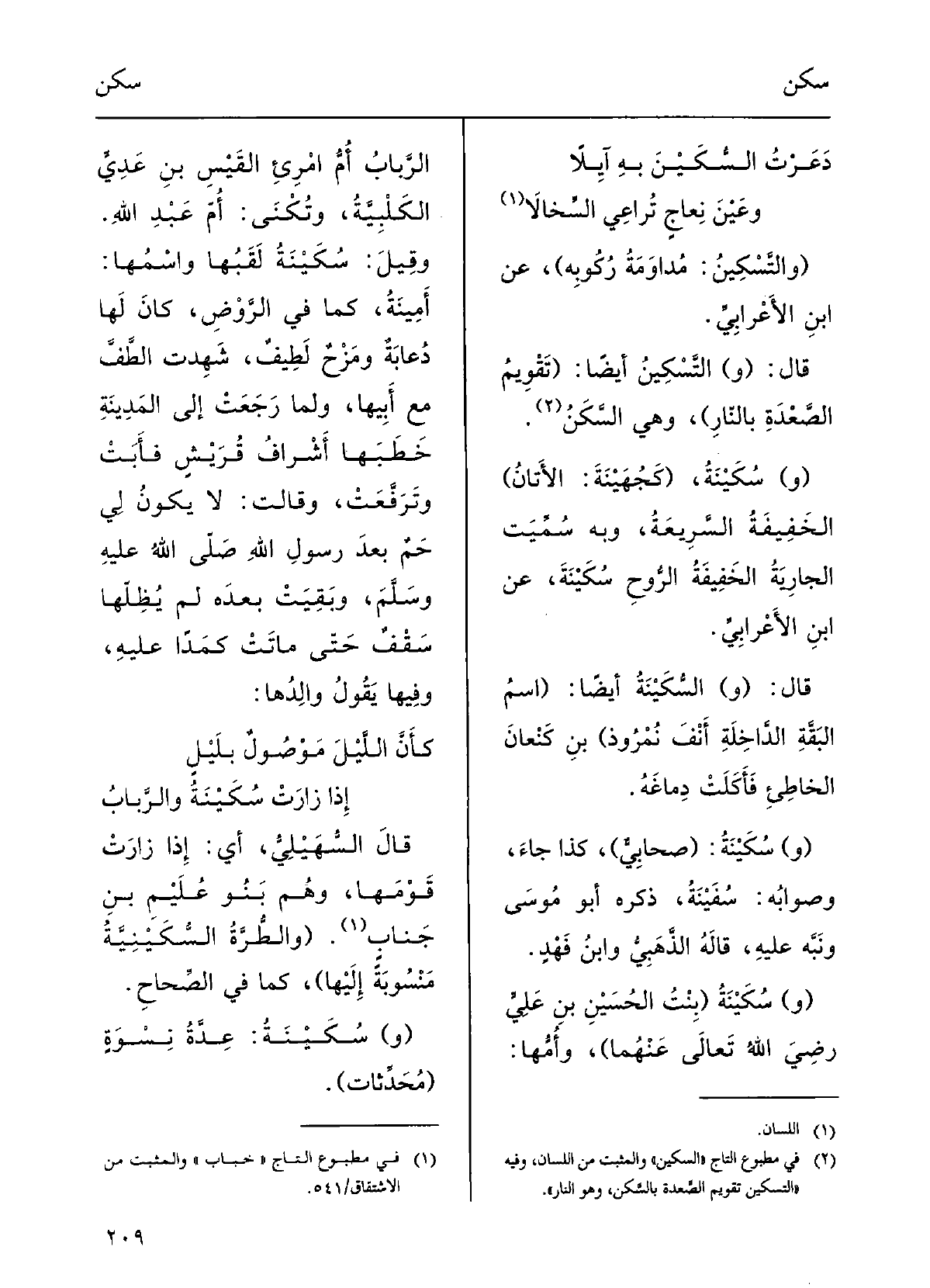 (و) سُكَيْنةُ، (كجُهَيْنَةَ: الأَتانُ) الخَفيفَةُ السَّريعَةُ، وَبِه سُمِّيتِ الجارِيَةُ الخَفِيفَةُ الرُّوحِ سُكَيْنَة؛ عَن ابنِ الأعْرابيِّ.
