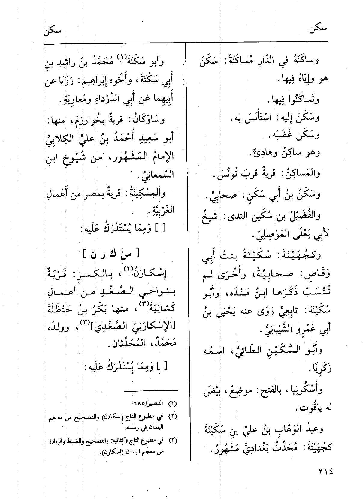: سكارن، بالكسْرِ: قَرْيةٌ بنَواحِي الصغد مِن أَعْمالِ كثانية مِنْهَا، بكْرُ بنُ حَنْضَلَةَ ووَلدُه محمدٌ المُحدِّثانِ.