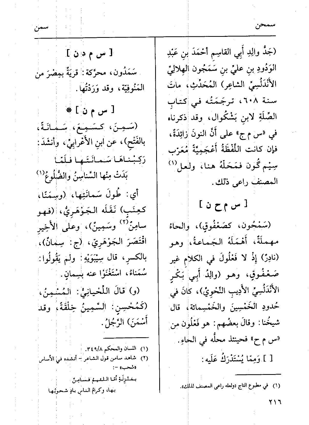 ) (سَمْحونٌ، كصَعْفوقٍ) : والحاءُ مُهْملَة أَهْمَلَه الجماعَةُ.