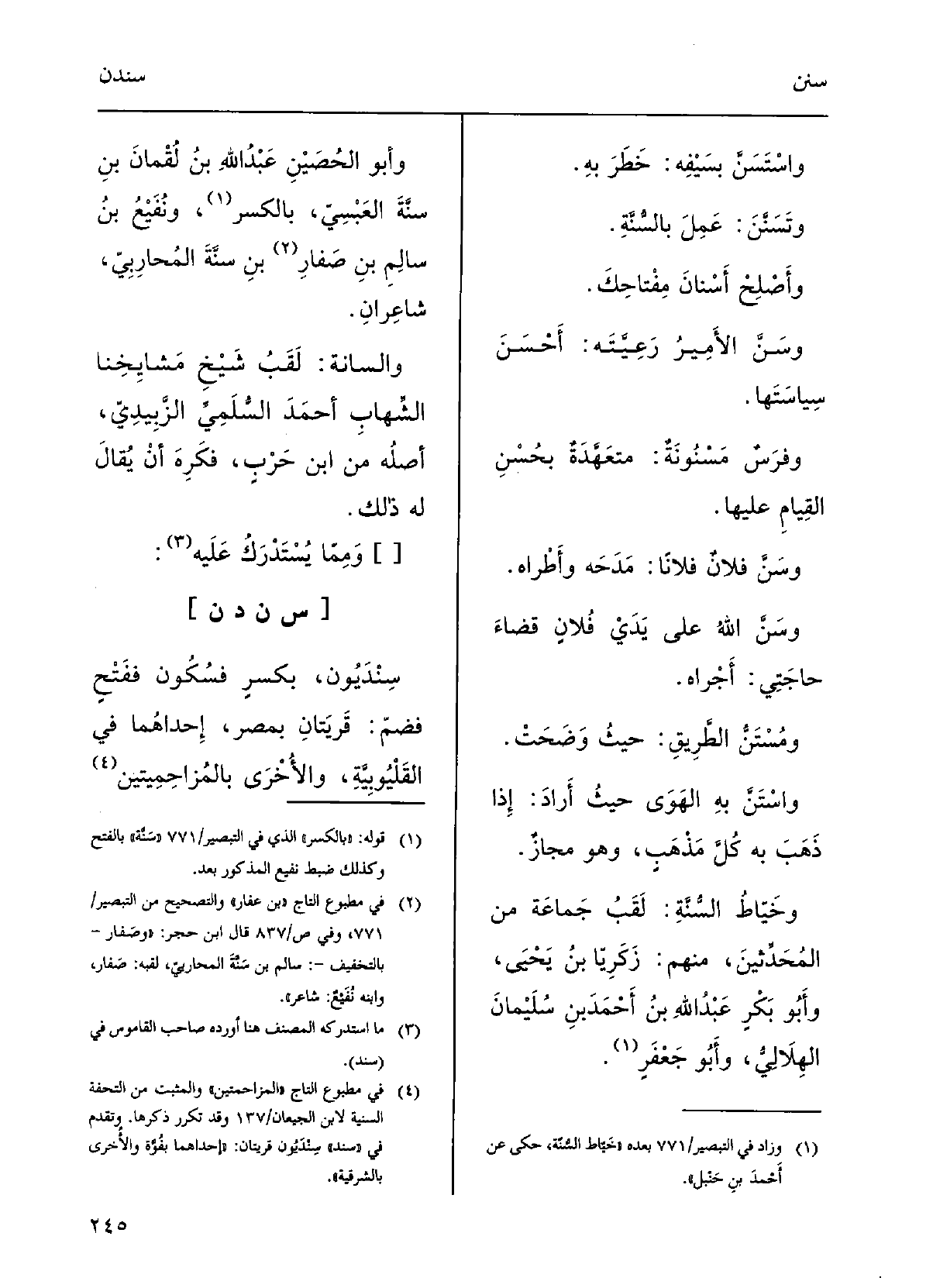 وخياطُ} السّنَّةِ: لَقَبُ جماعَةٍ من المُحدِّثِين مِنْهُم: زكَرِيَّا بنُ يَحْيَى، وأَبو بكْرٍ عبدُ اللهاِ بنُ أَحمدَ بنِ سُلَيْمان الهِلالِيُّ، وأَبو جَعْفرٍ، وأَبو الحُصَيْن عبدُ اللهاِ بنُ لتمانَ بنِ {سنَّةَ العَبْسيُّ بالكسْرِ، ونفيعُ بنُ سالِمِ بنِ عفارِ بنِ سِنَّةَ المُحارِبيُّ شاعِرَانِ.