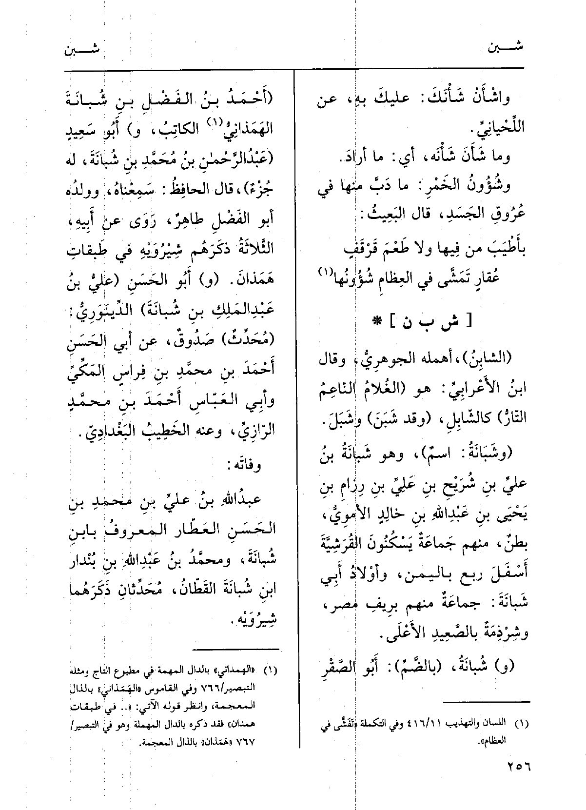 (و) شُبانَةُ، (بالضَّمِّ) : أَبو الصَّقْر، (أَحمدُ بنُ الفَضْلِ بنِ شُبانَةَ الهَمَذانيُّ الكاتِبُ؛ و) أَبو سعيدٍ (عبْدُ الرَّحْمنِ بنُ محمدِ بنِ شُبانَةَ، لَهُ جُزْءٌ) .