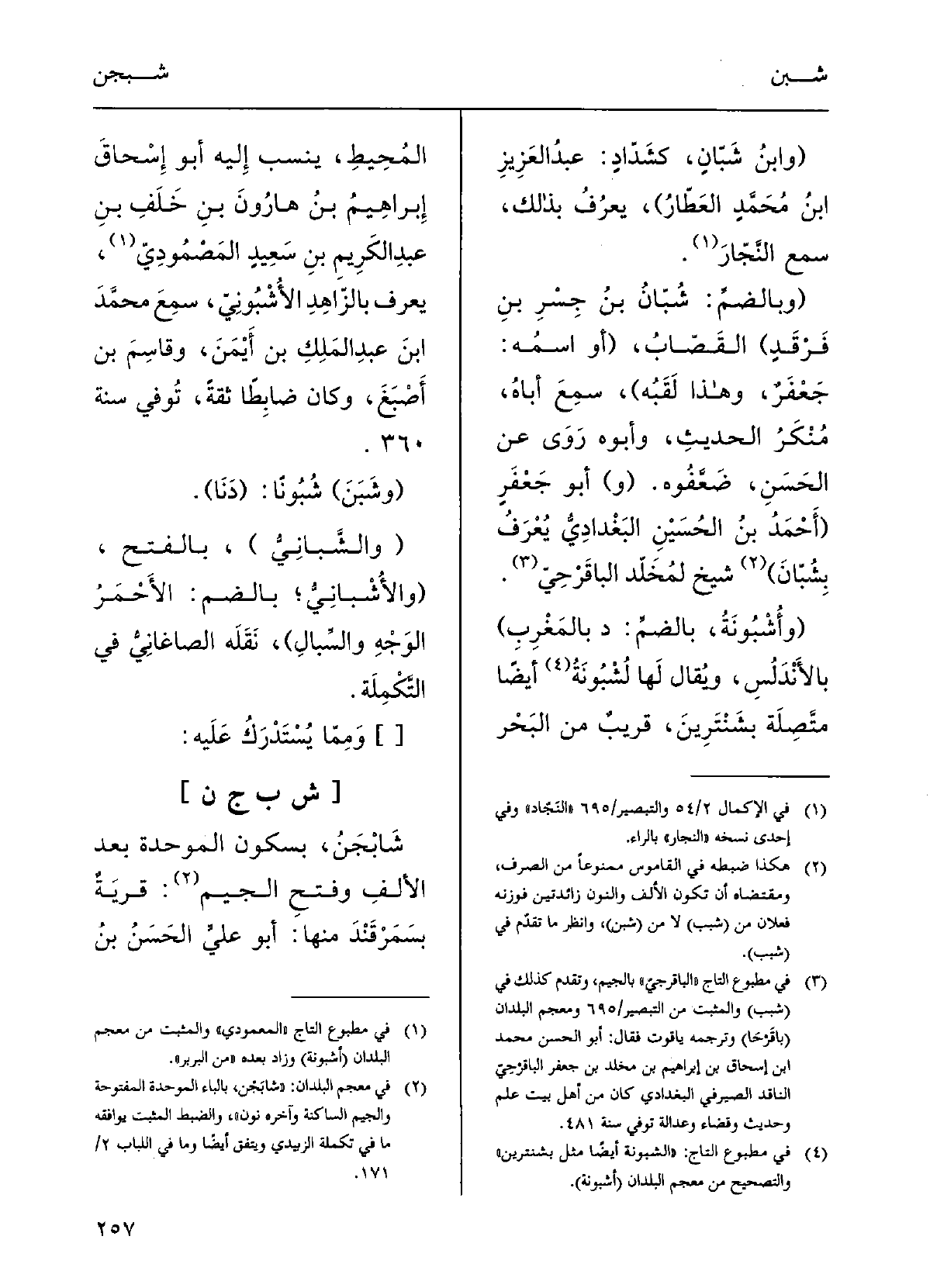 :) شابْجَنُ، بسكونِ الموحَّدَةِ بعْدَ الألفِ وفتْحِ الجيمِ: قَرْيةٌ بسَمَرْقَنْد، مِنْهَا أَبو عليَ الحَسَنُ بنُ