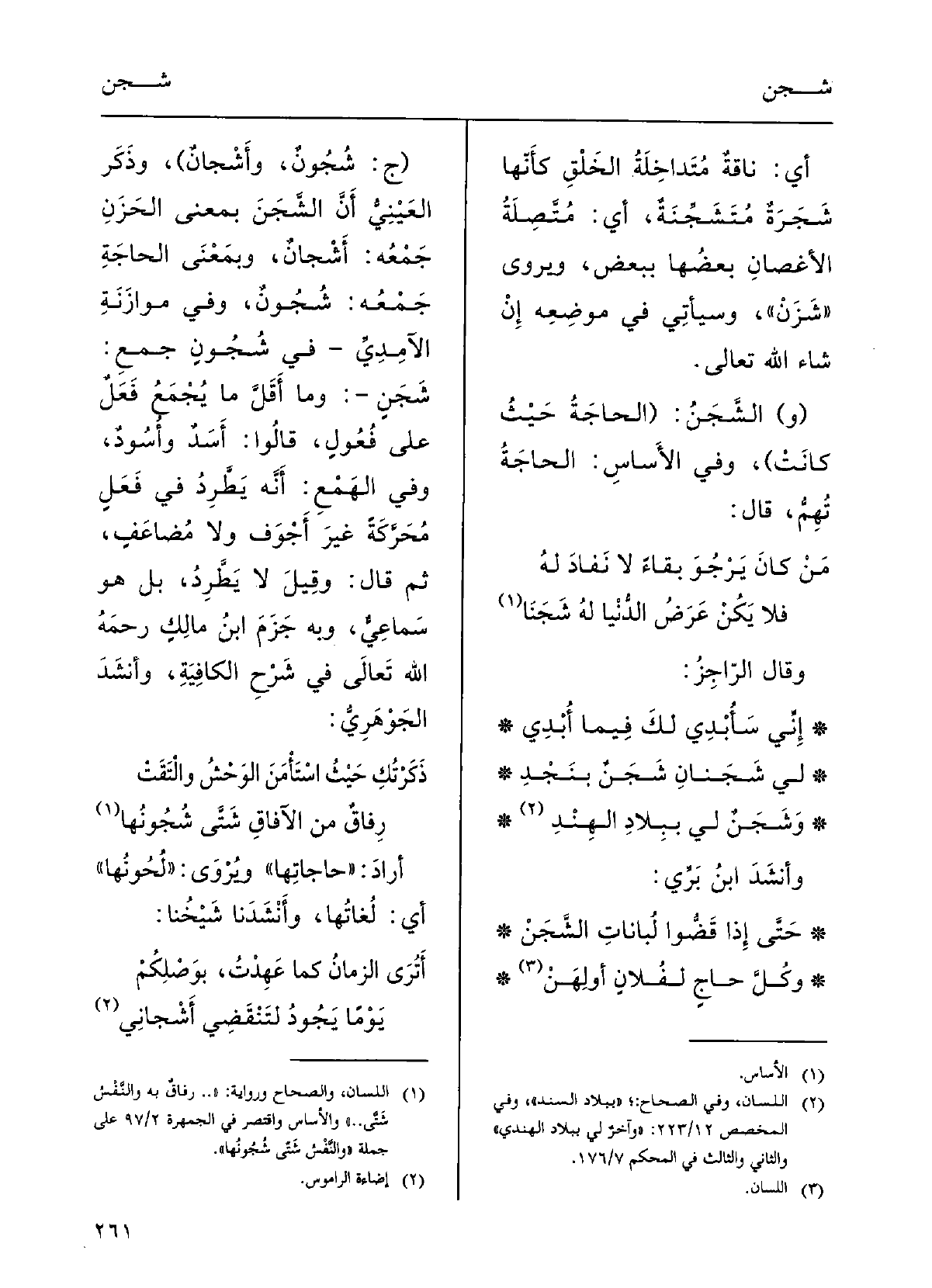 حَتَّى إِذا قَضُّوا لبُاناتِ الشُّجَنْوكُلَّ حاجٍ لفُلاتٍ أَوْ لِهَنْ (ج شُجونٌ وأشْجانٌ.