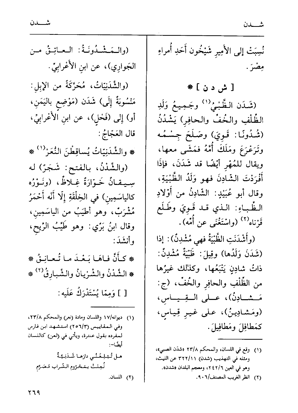 : (شَدَنَ الظَّبْيُ وجميعُ وَلَدِ الظِّلْفِ والخُفِّ والحافِرِ) يَشْدُنُ (شُدُوناً: قَوِيَ) وصَلَحَ جِسْمه وتَرَعْرَعَ ومَلَكَ أُمَّه فمَشَى مَعَها.