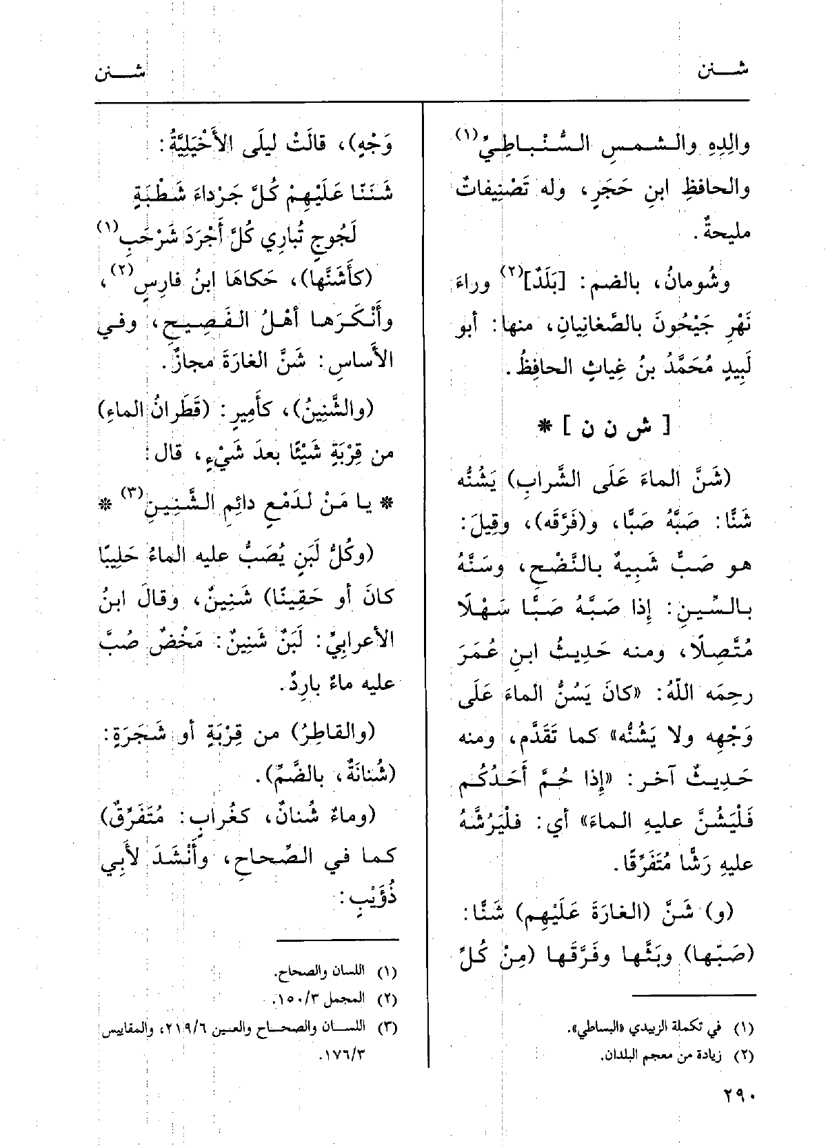 يَا مَنْ لدَمْعٍ دائِم} الشَّنِين (وكلُّ لَبَنٍ يُصَبُّ عَلَيْهِ الماءُ حَلِيباً كانَ أَو حَقِيناً) {شَنينٌ.