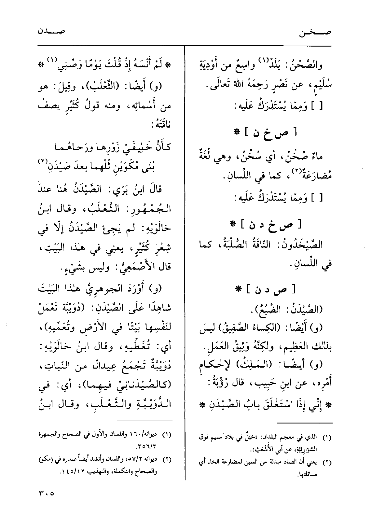 كأنَّ خَلِيفَيْ زَوْرِها ورَحَاهمابُنَى مَكَوَيْنِ ثُلِّمَا بعد صَيْدَنِقالَ ابنُ بَرِّي: الصَّيْدَنُ هُنَا عنْدَ الجمهورِ: الثَّعْلَبُ.