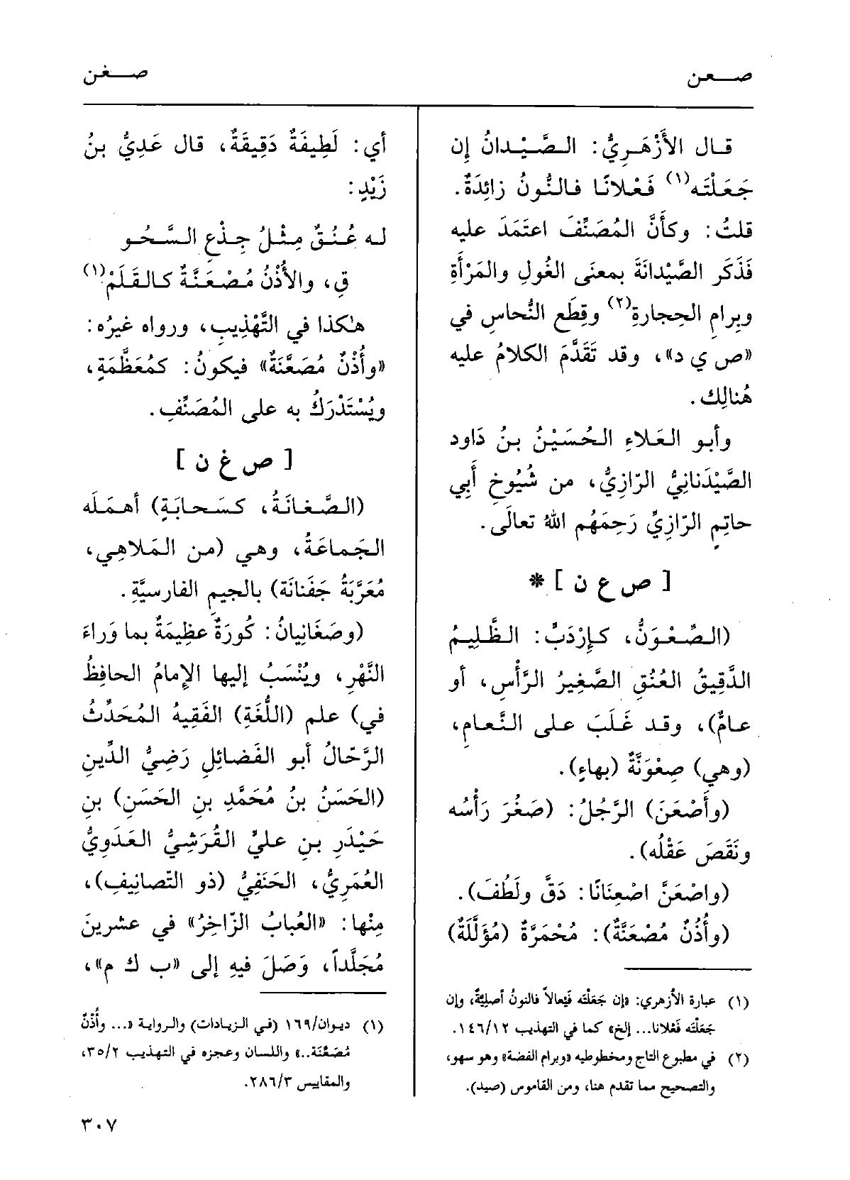 ِ قالَ الأزْهرِيُّ: الصَّيْدَانُ إنْ جَعَلْته فَعْلاناً، فالنُّونُ زائِدَةٌ.