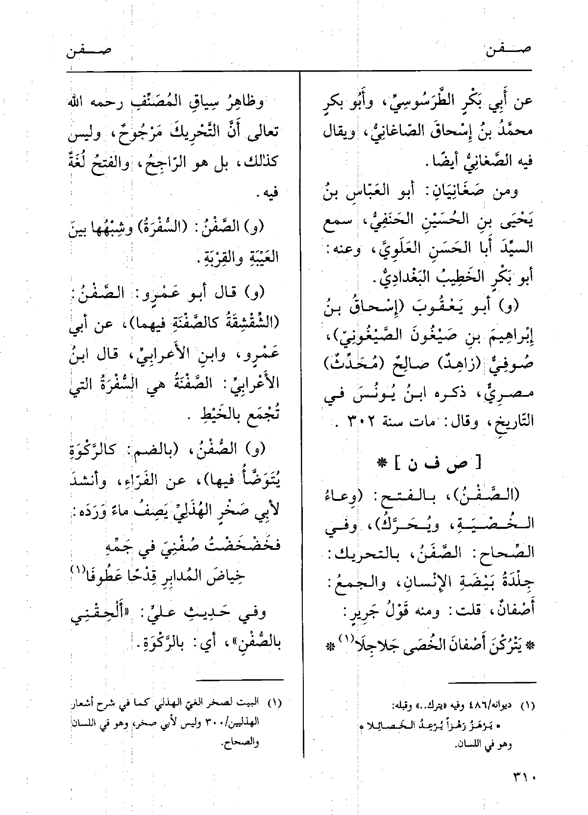 عَن أَبي بكْرٍ الطَّرسُوسِيُّ؛ وأَبو بكْرٍ محمدُ بنُ إسْحق الصَّاغانيُّ، ويقالُ فِيهِ الصَّغانيُّ أَيْضاً.