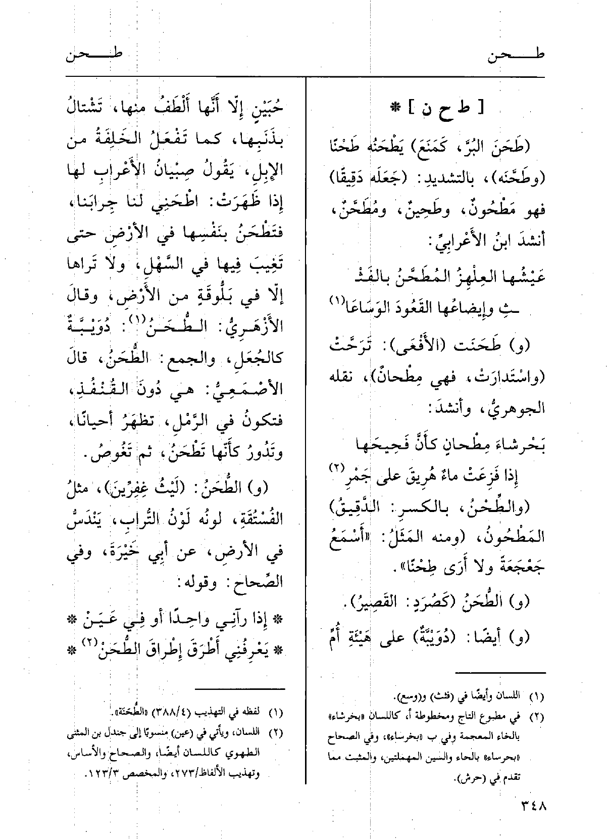 وقالَ الأَزْهرِيُّ: الطُّحَنُ دُوَيْبَّةٌ كالجُعَلِ، والجَمْعُ الطُّحَنُ.