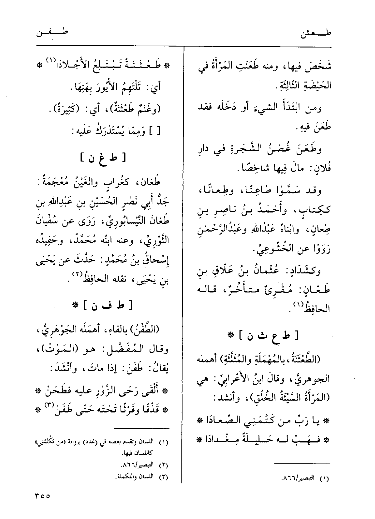 : (الطَّفْنُ) ، بالفاءِ: أهْمَلَهُ الجَوْهرِيُّ.